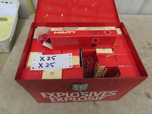 Metal Explosives Box 8"x8" x 12" with 26 Boxes Hilti 10x10 Cal 6.811m Safety Cartridges - New in Box