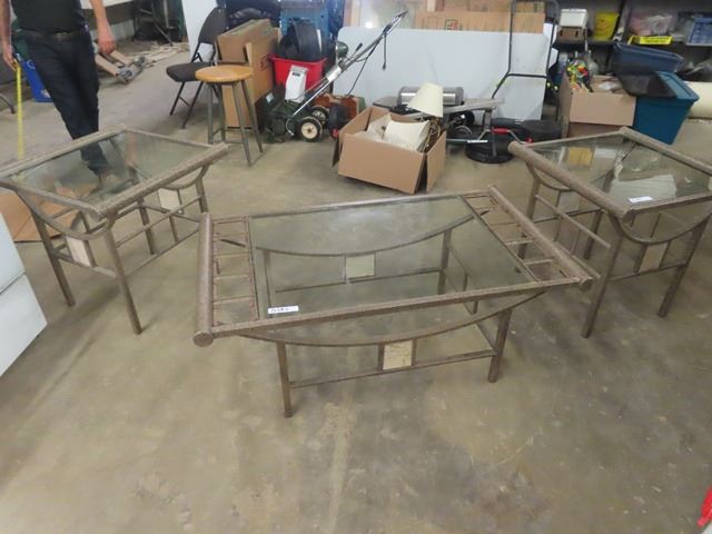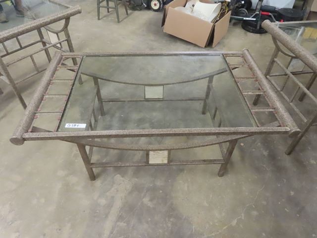 Metal + Glass Coffee Tables 20" x 49" x 29" & 2 End Tables 26" x 26" x 26"