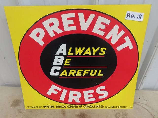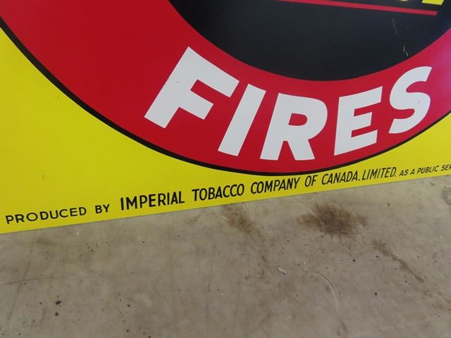 Metal Imperial Tobacco Prevent Fires Sign 15" X 17"