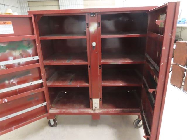 Metal Job Box on Wheels w Shelving & Castors 68"H 60"W & 30" D