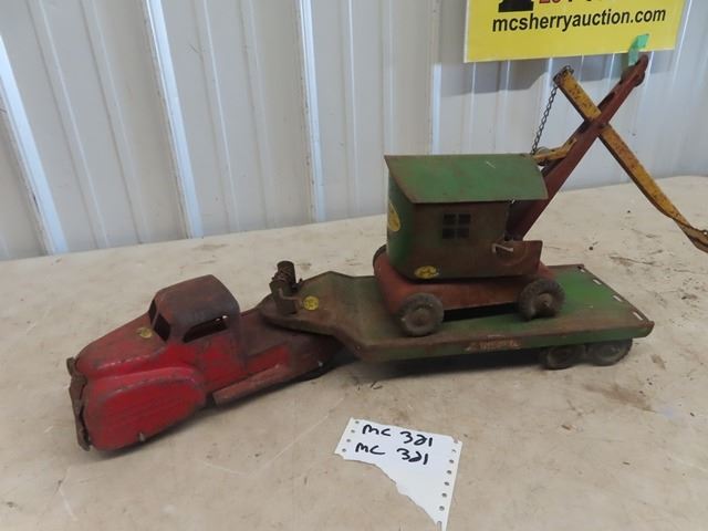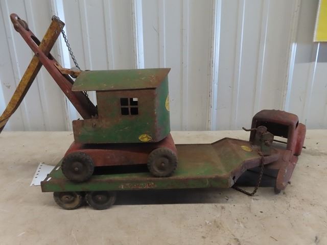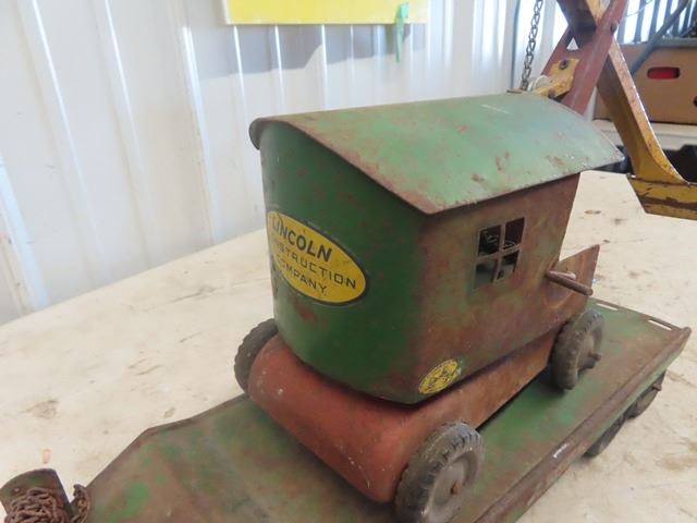 Metal Lincoln 3 Pc Toy Set- Truck, Trailer, Dragline Shovel