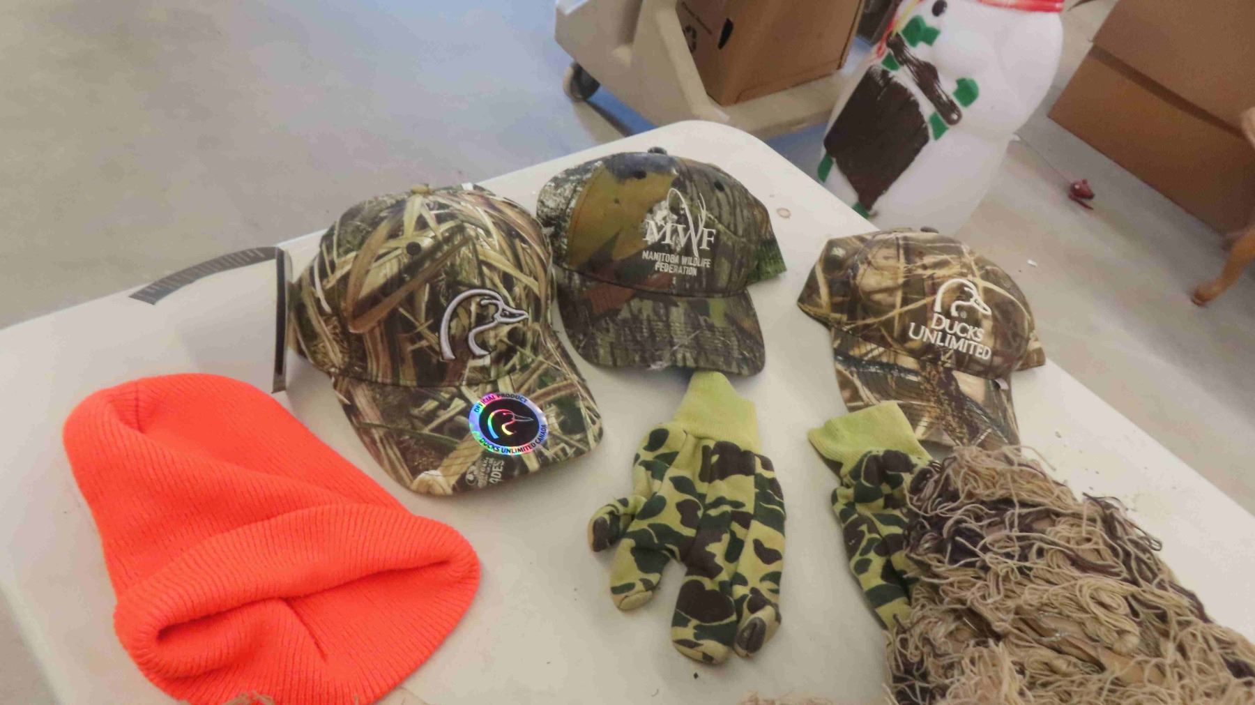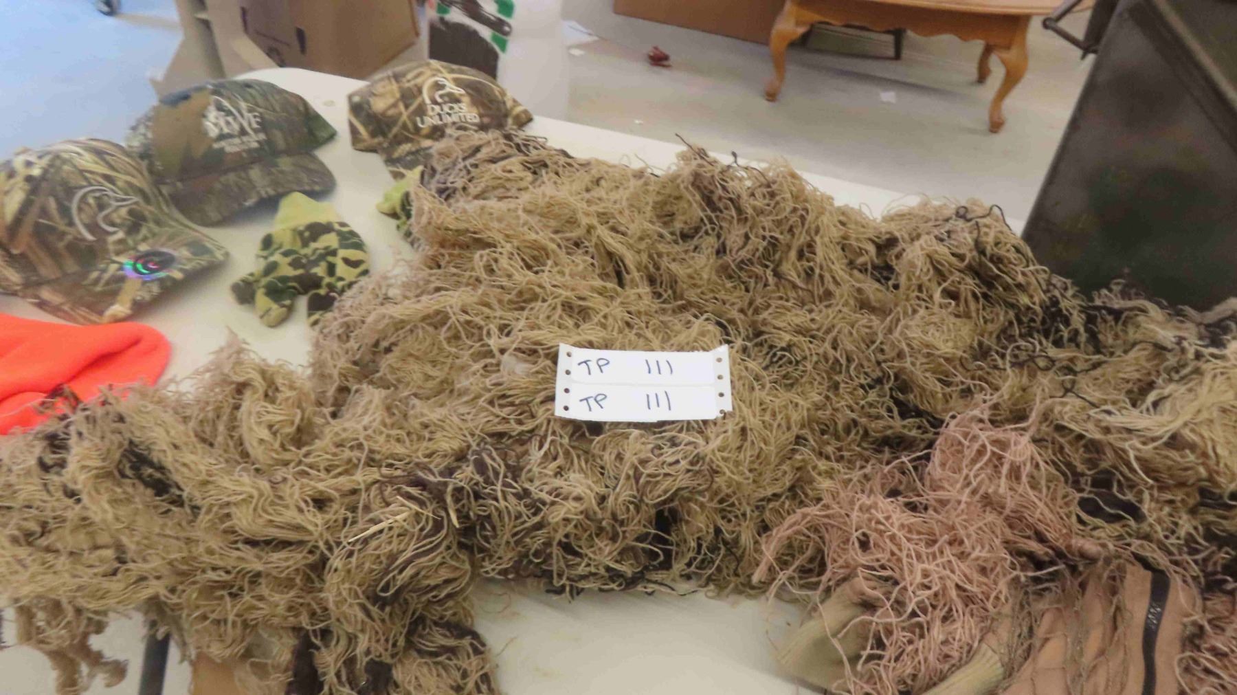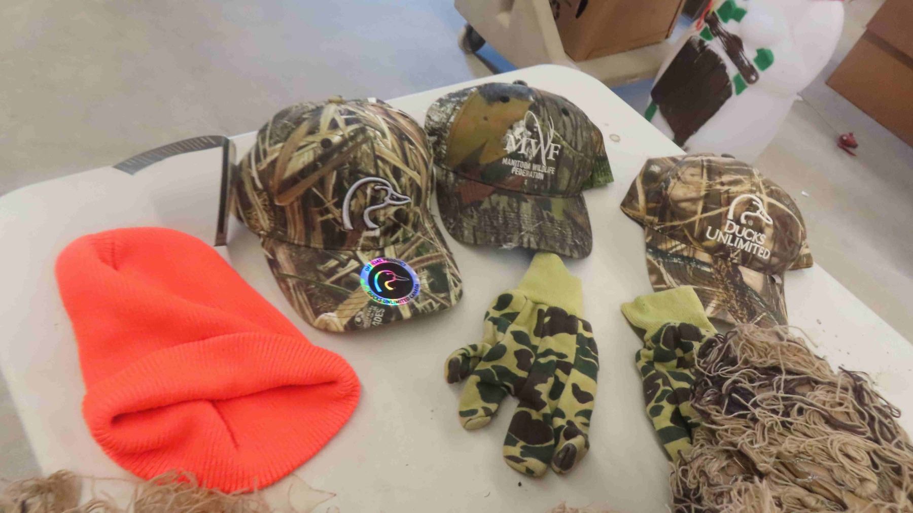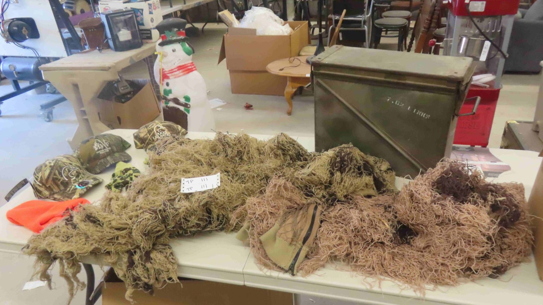 Metal Military Ammo Box , Camo Hats Some with Tags , 2 Camo Covers ,