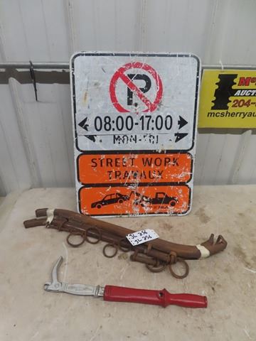 Metal No Parking Street Sign 18" x 24", Set of Horse Hames, Nail Puller