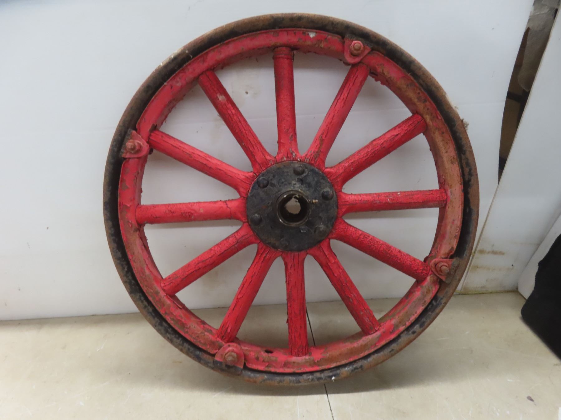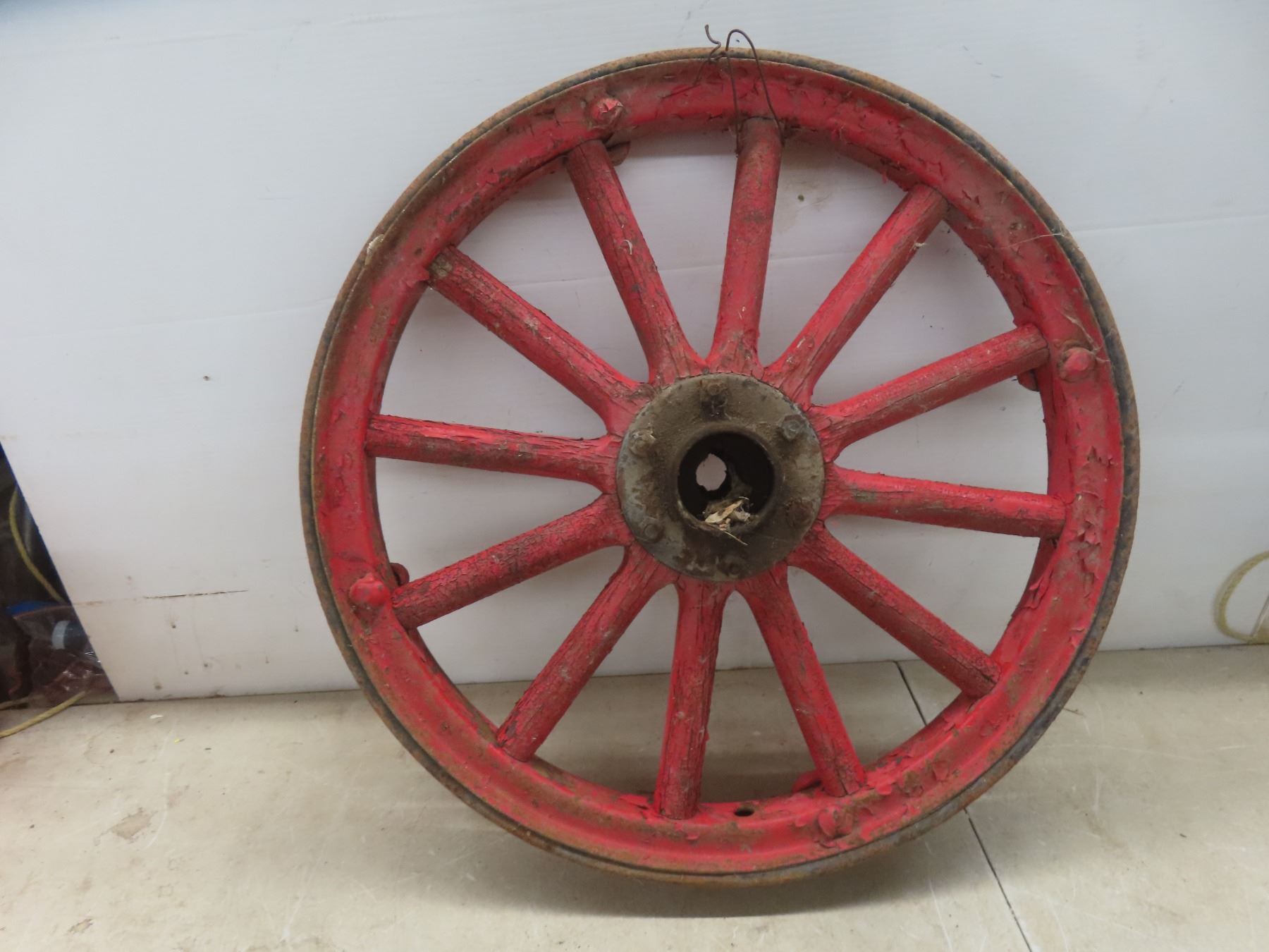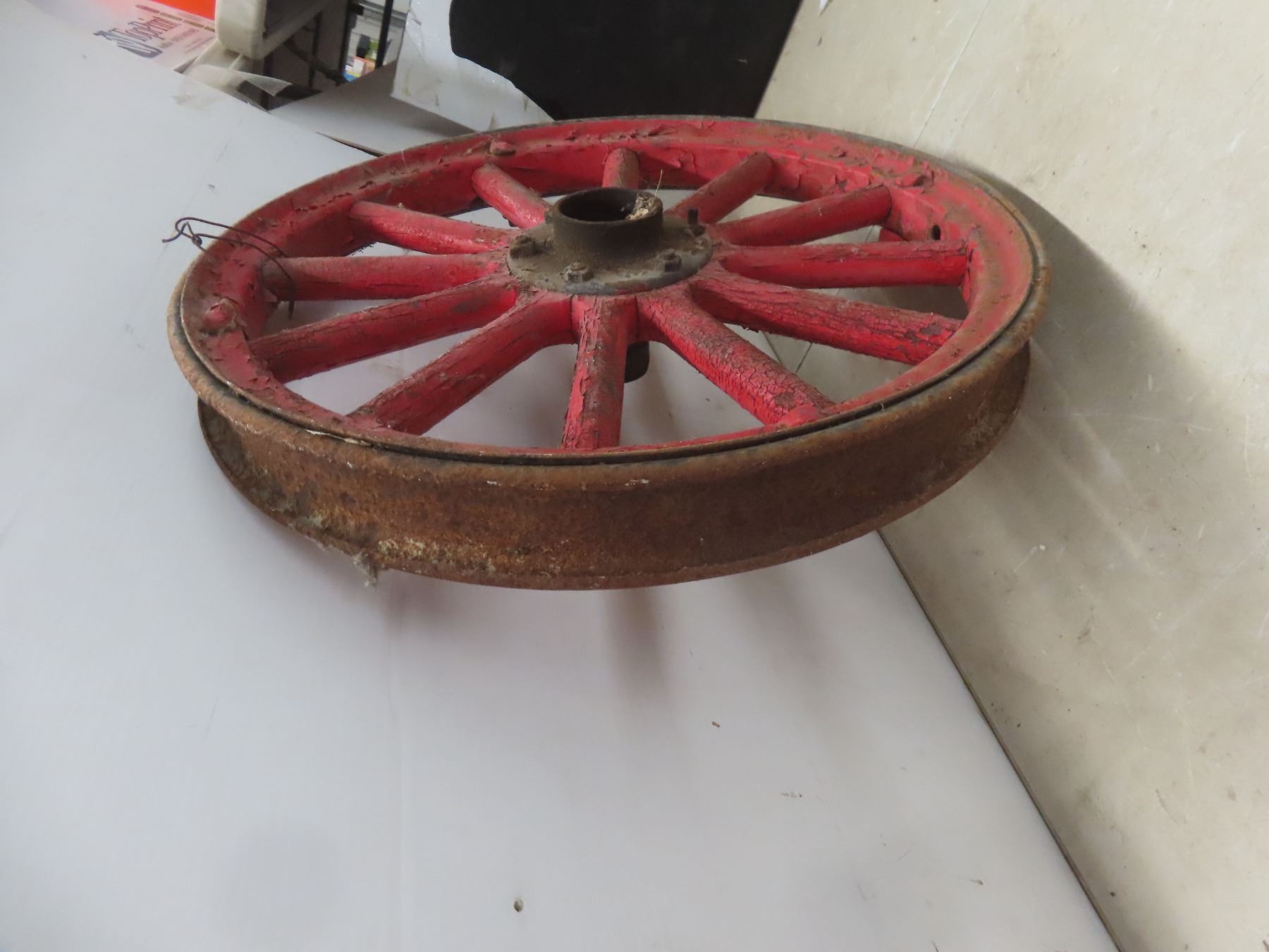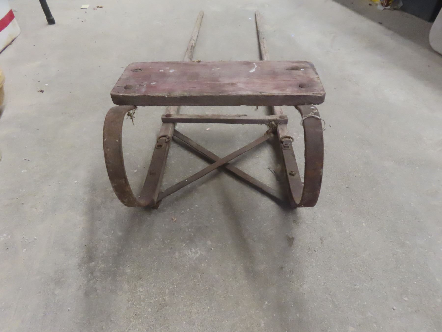 Metal Rimmed Wood Spoked Auto Wheel 24" Diameter + Frame for Toboggan 54"