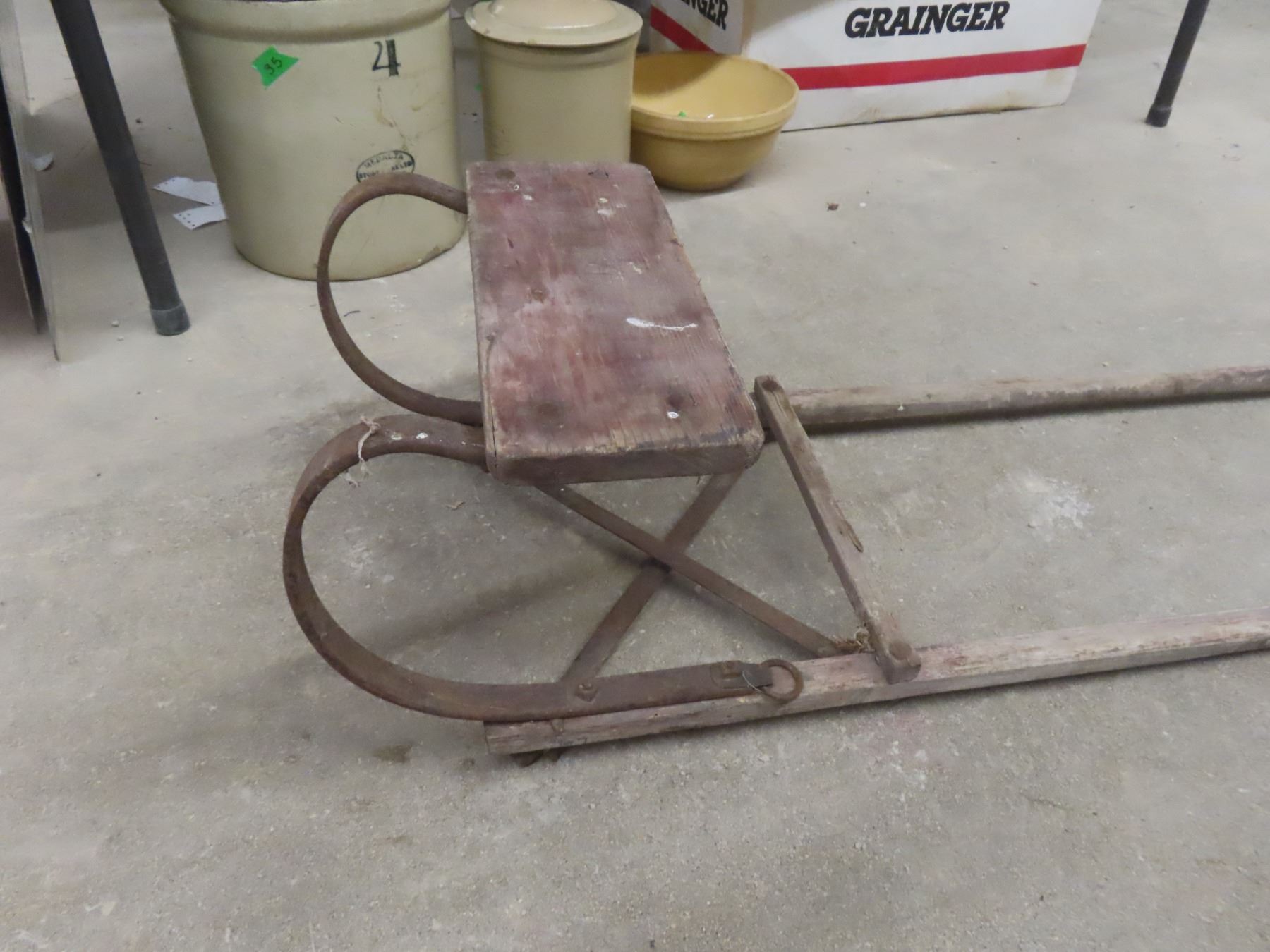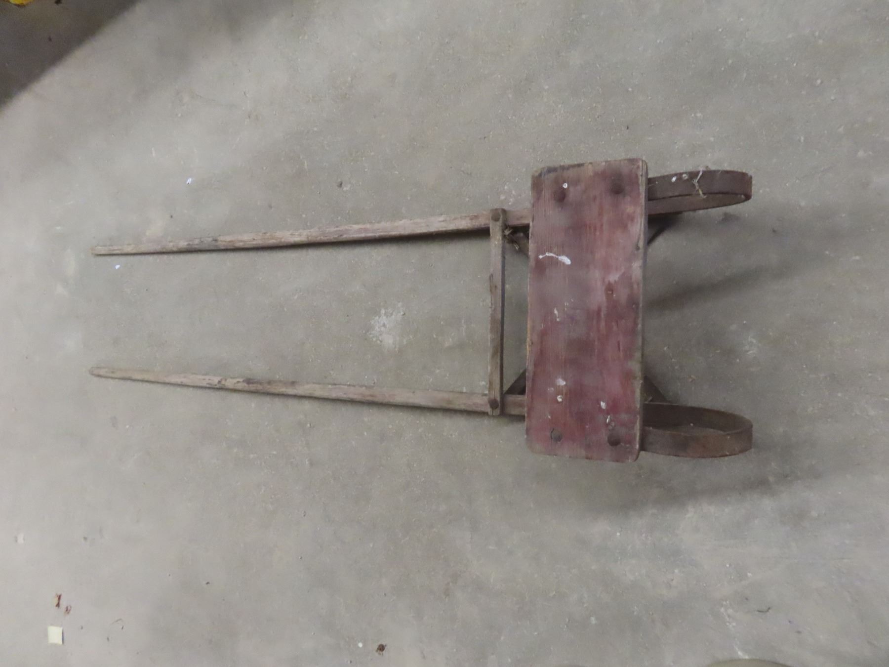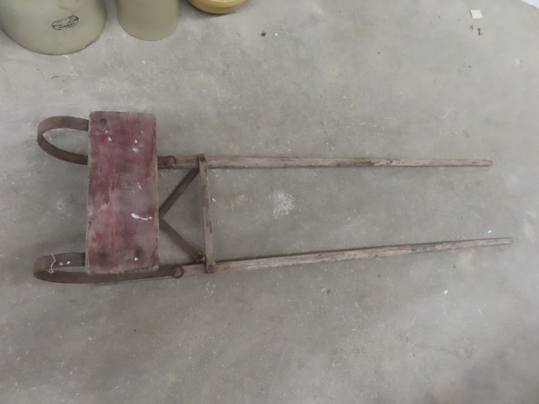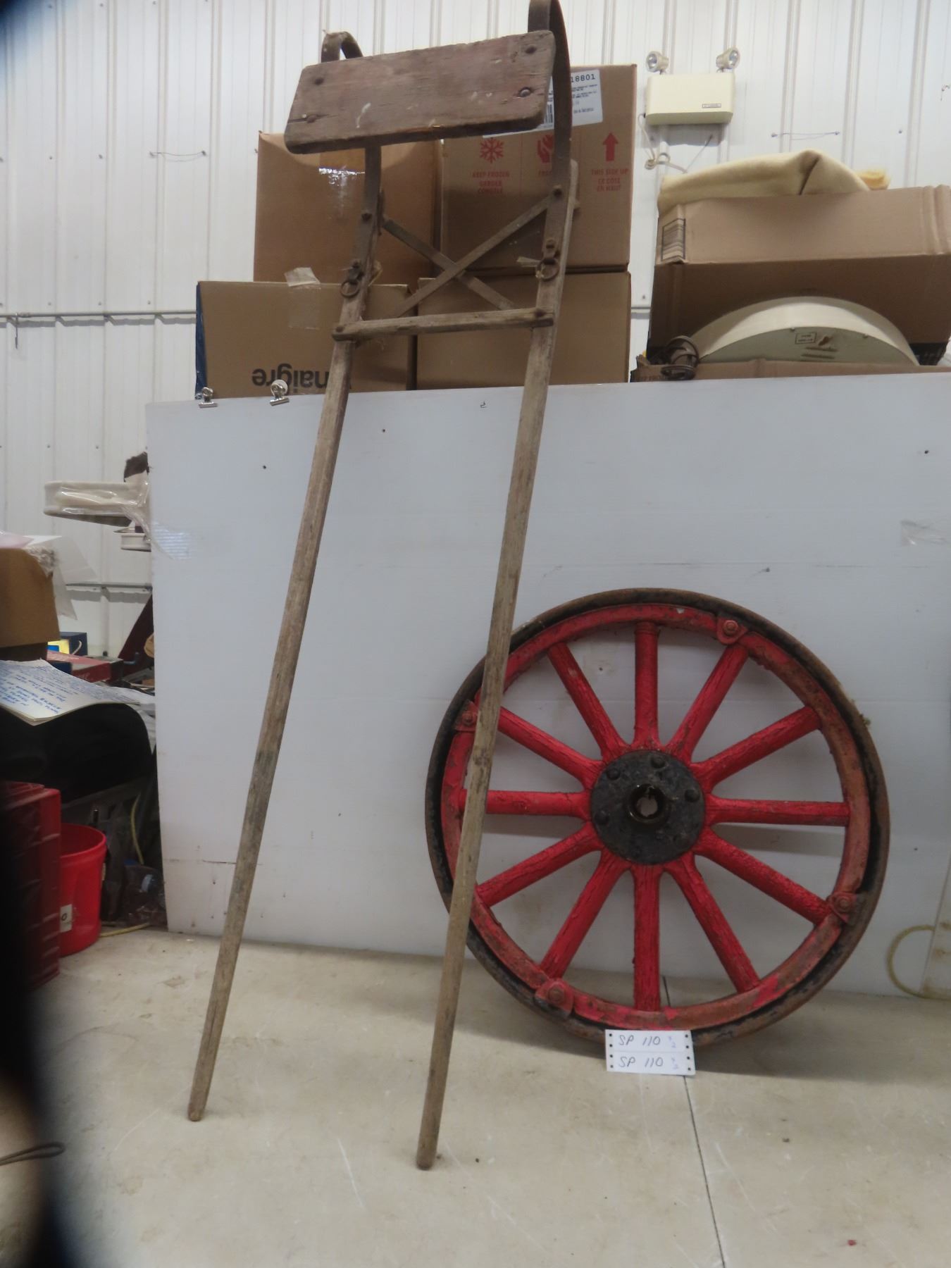 Metal Rimmed Wood Spoked Auto Wheel 24" Diameter + Frame for Toboggan 54"