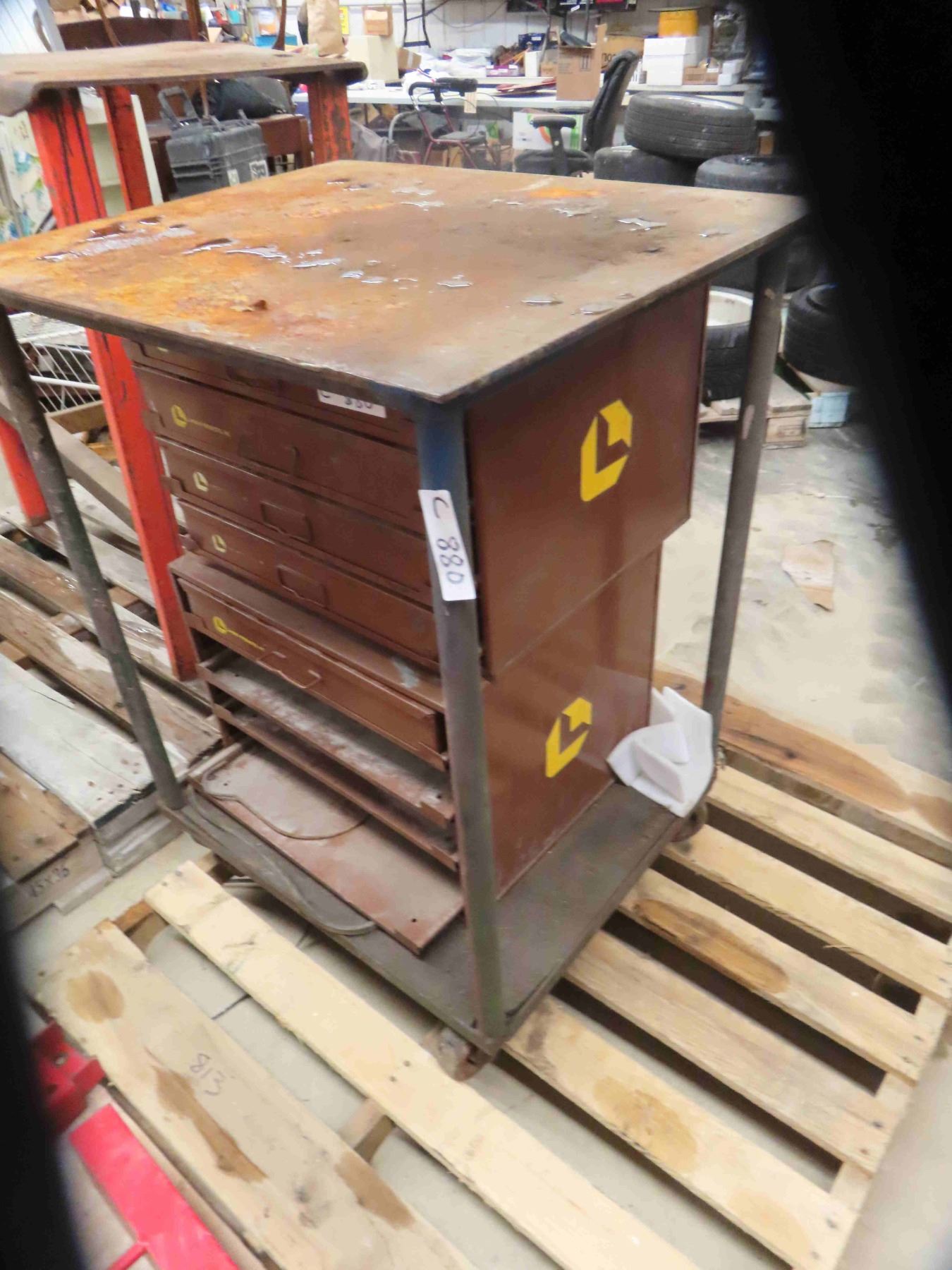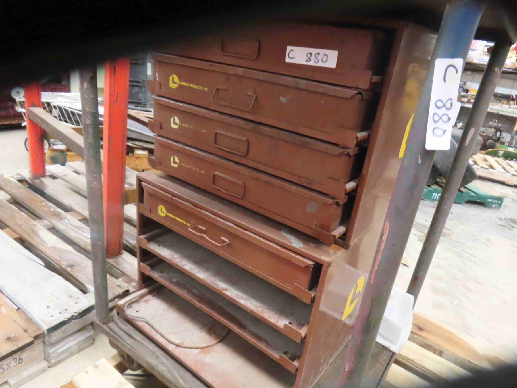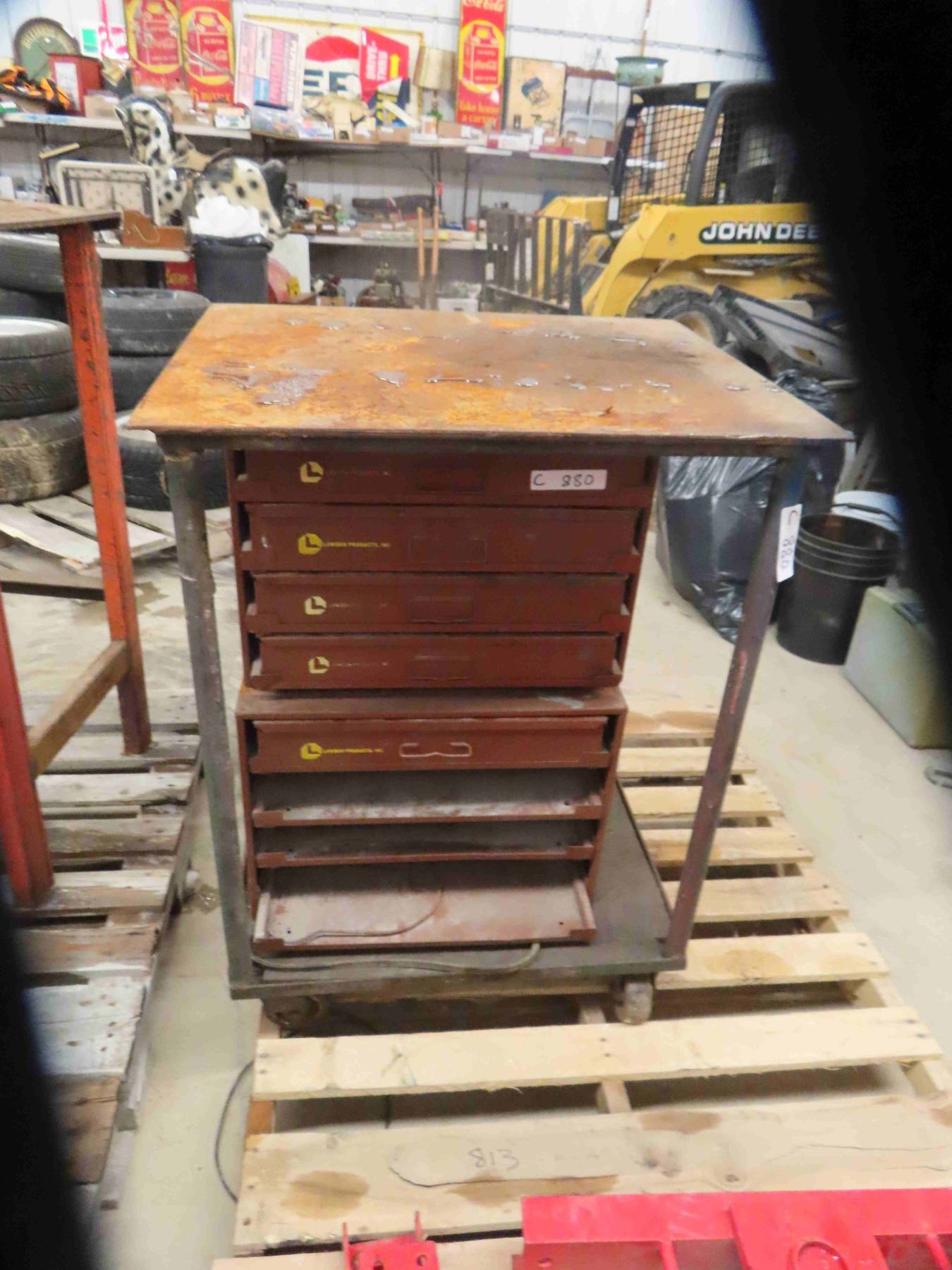 Metal Shop Stand on Casters 36'' x 28'' x 24'' with Shims, Spark Plugs, Bushings, Bearings, Auto Lamps, Plus