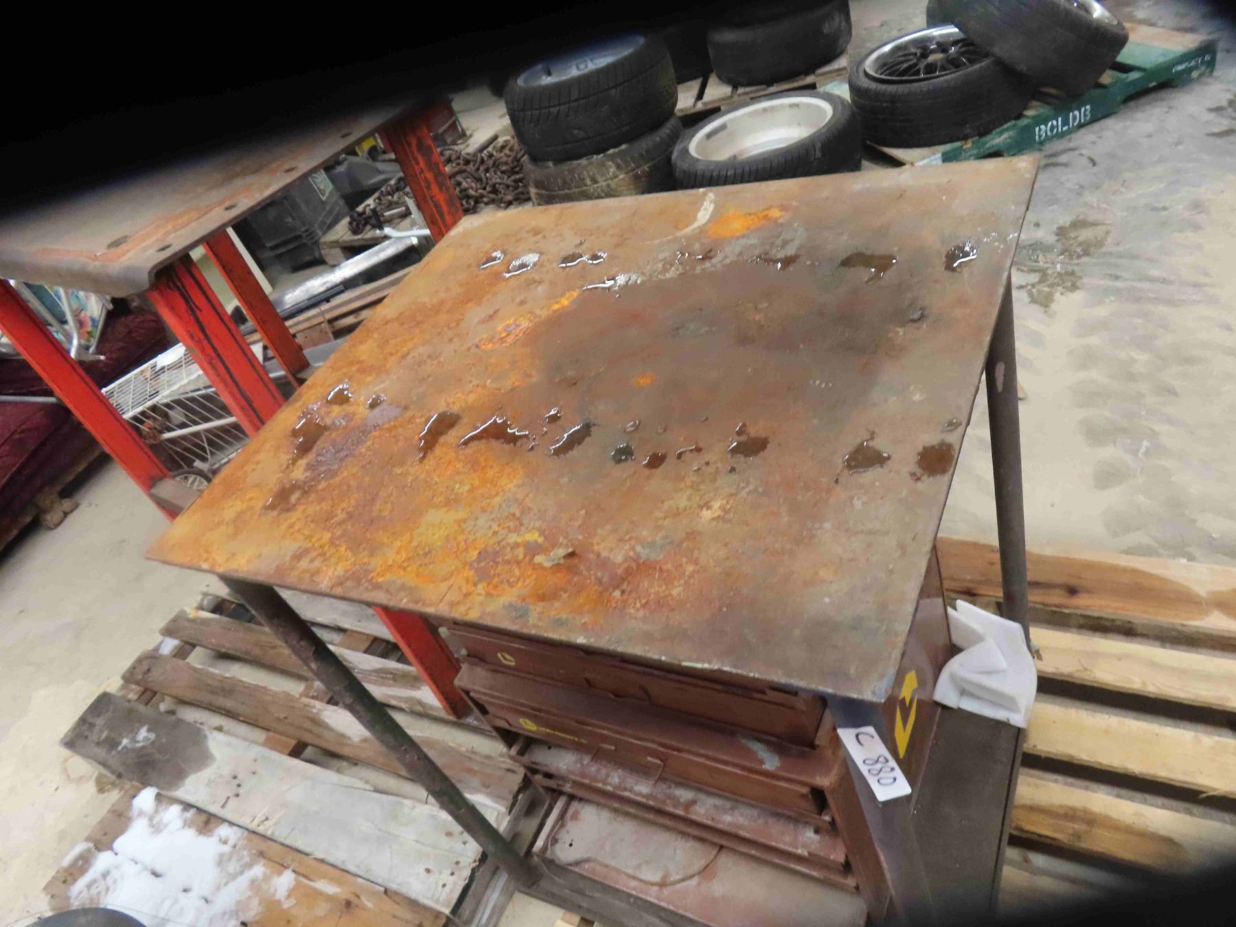 Metal Shop Stand on Casters 36'' x 28'' x 24'' with Shims, Spark Plugs, Bushings,