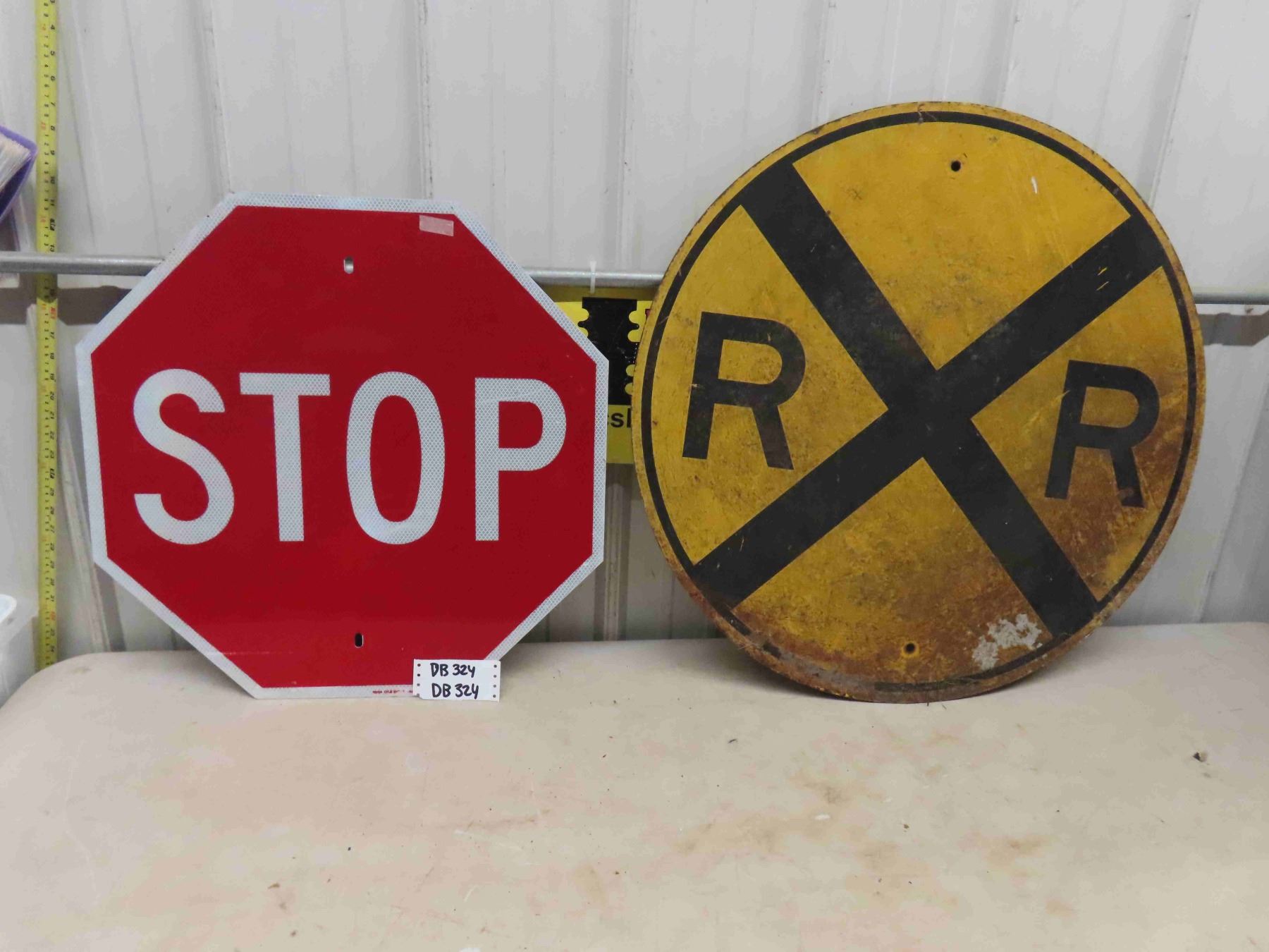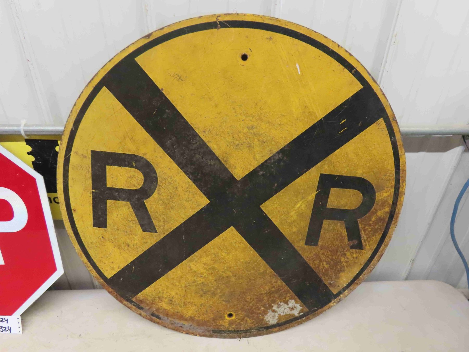 Metal Stop Sign + Heavy Steel Rail Road Crossing Sign 30" Wide