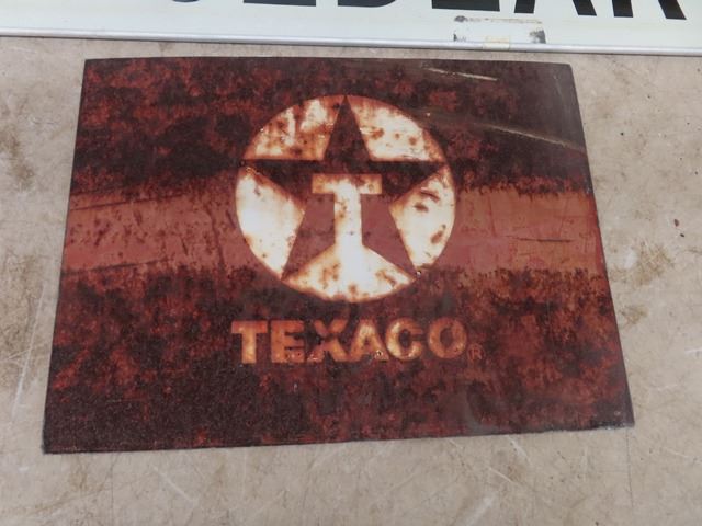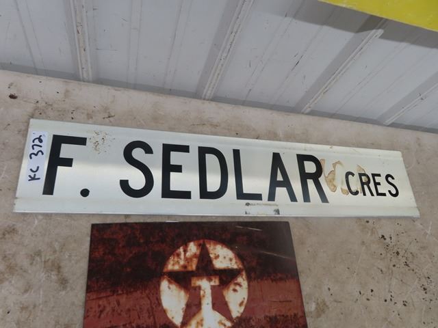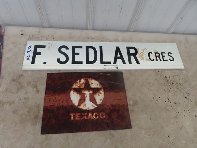 Metal Texaco Sign 10" x 13.5" & F. Sedlar cres. Street Sign 6" x 30"
