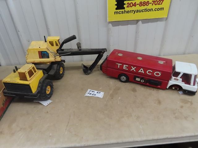 Metal Texaco Tanker Truck - Missing Front Wheels & Tonka Truck Excavator