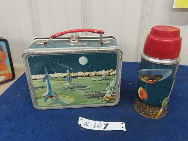Metal 'Thermos'' Space Themed Lunch Kit + Thermos