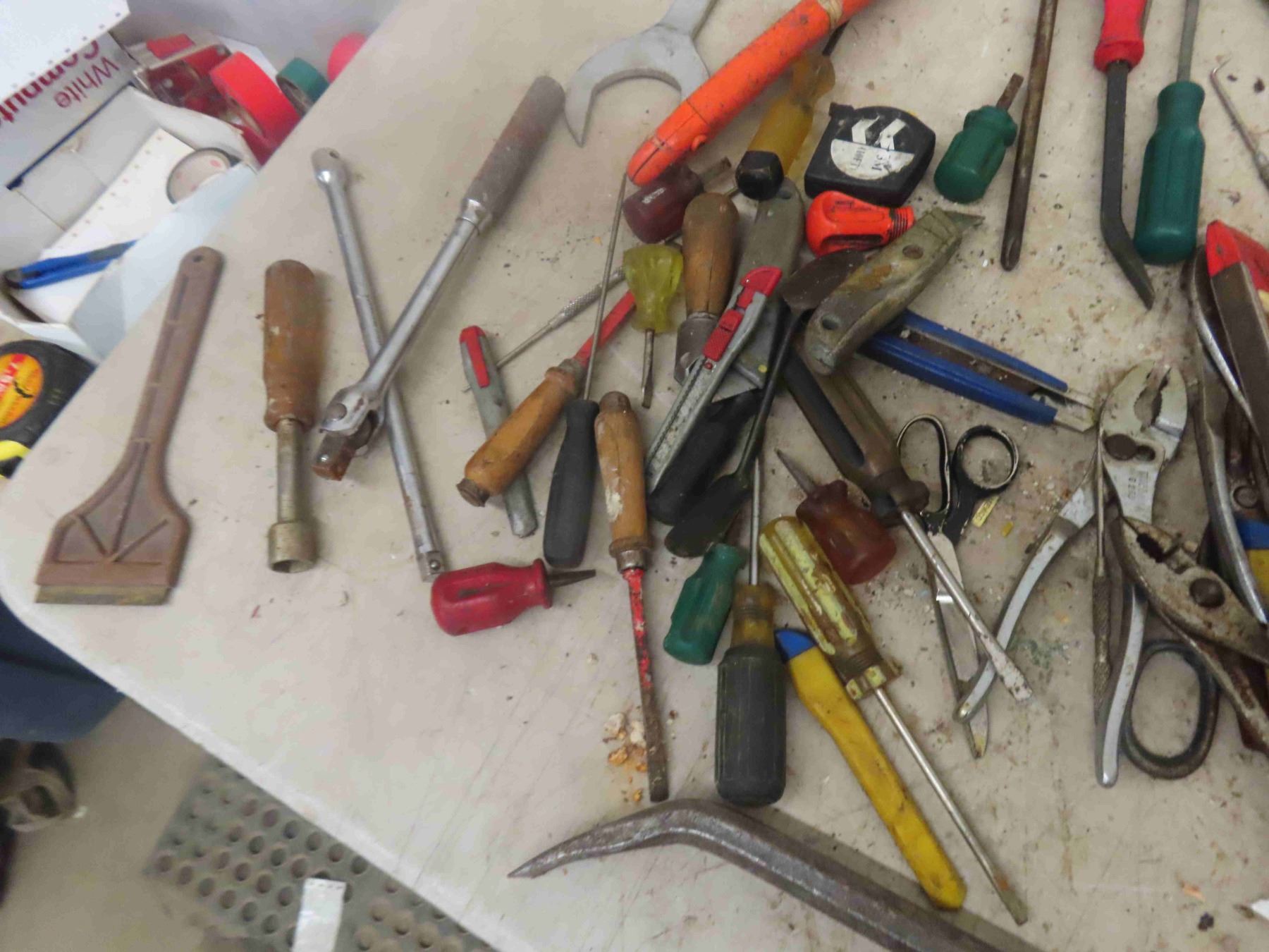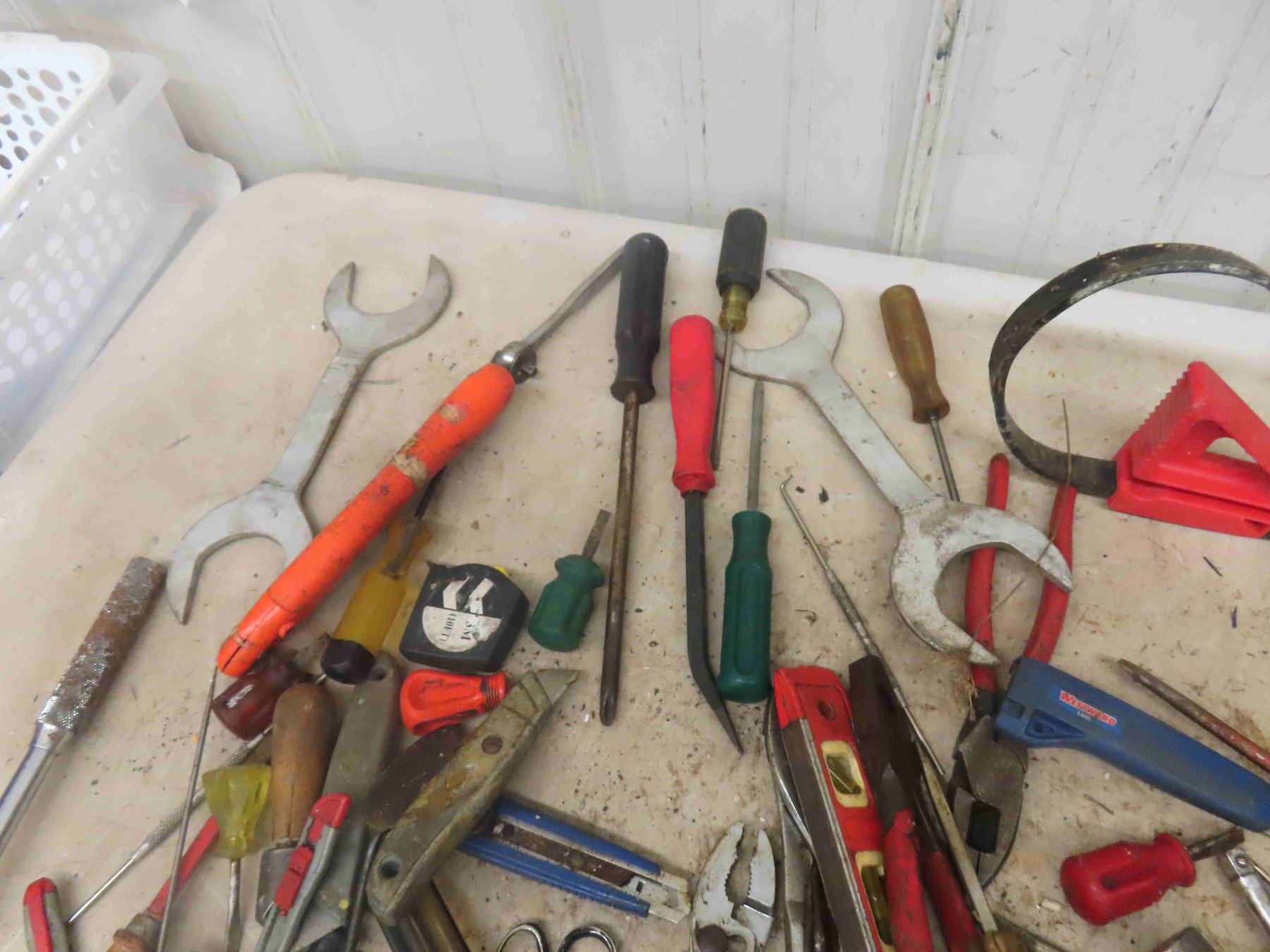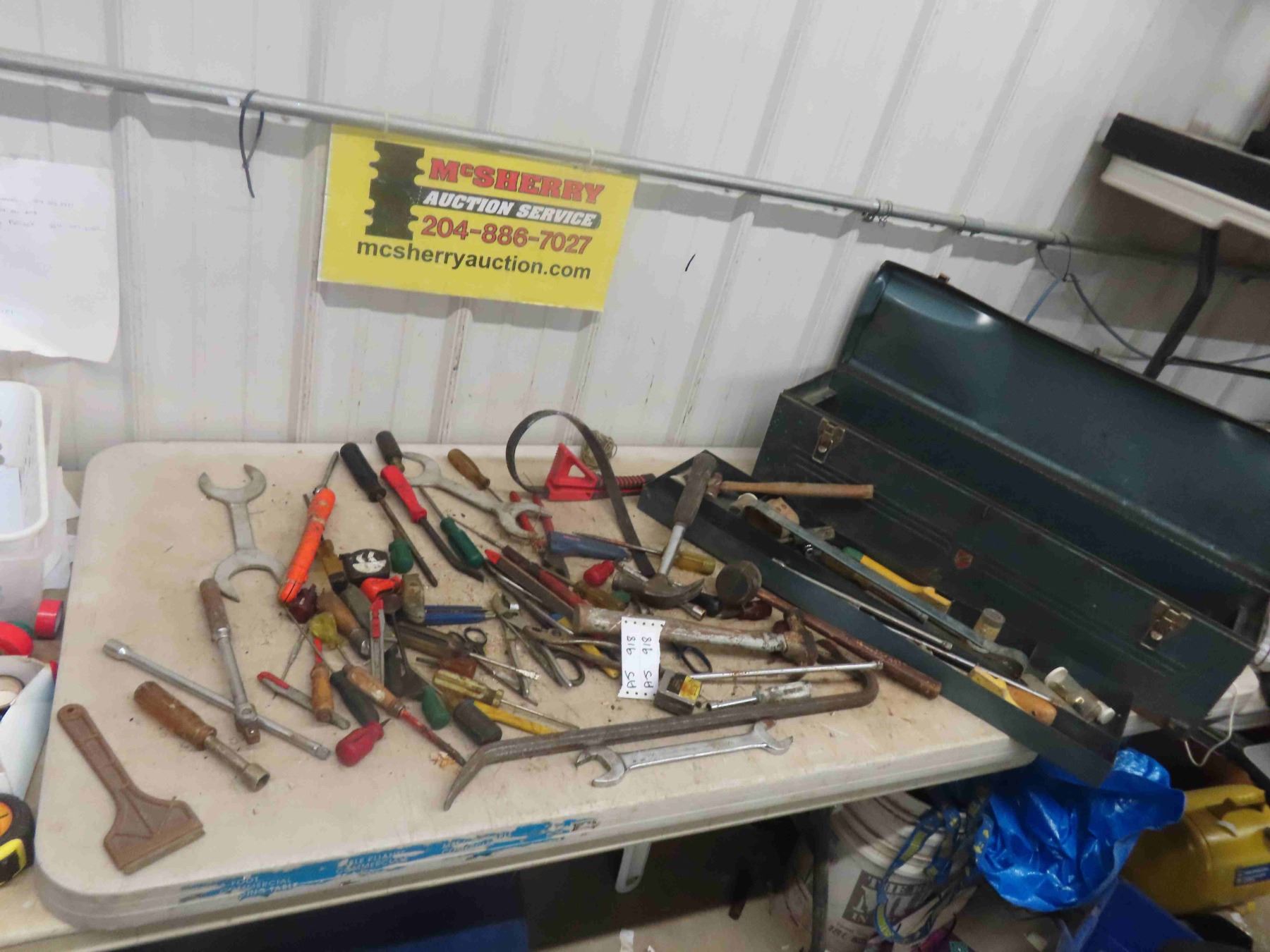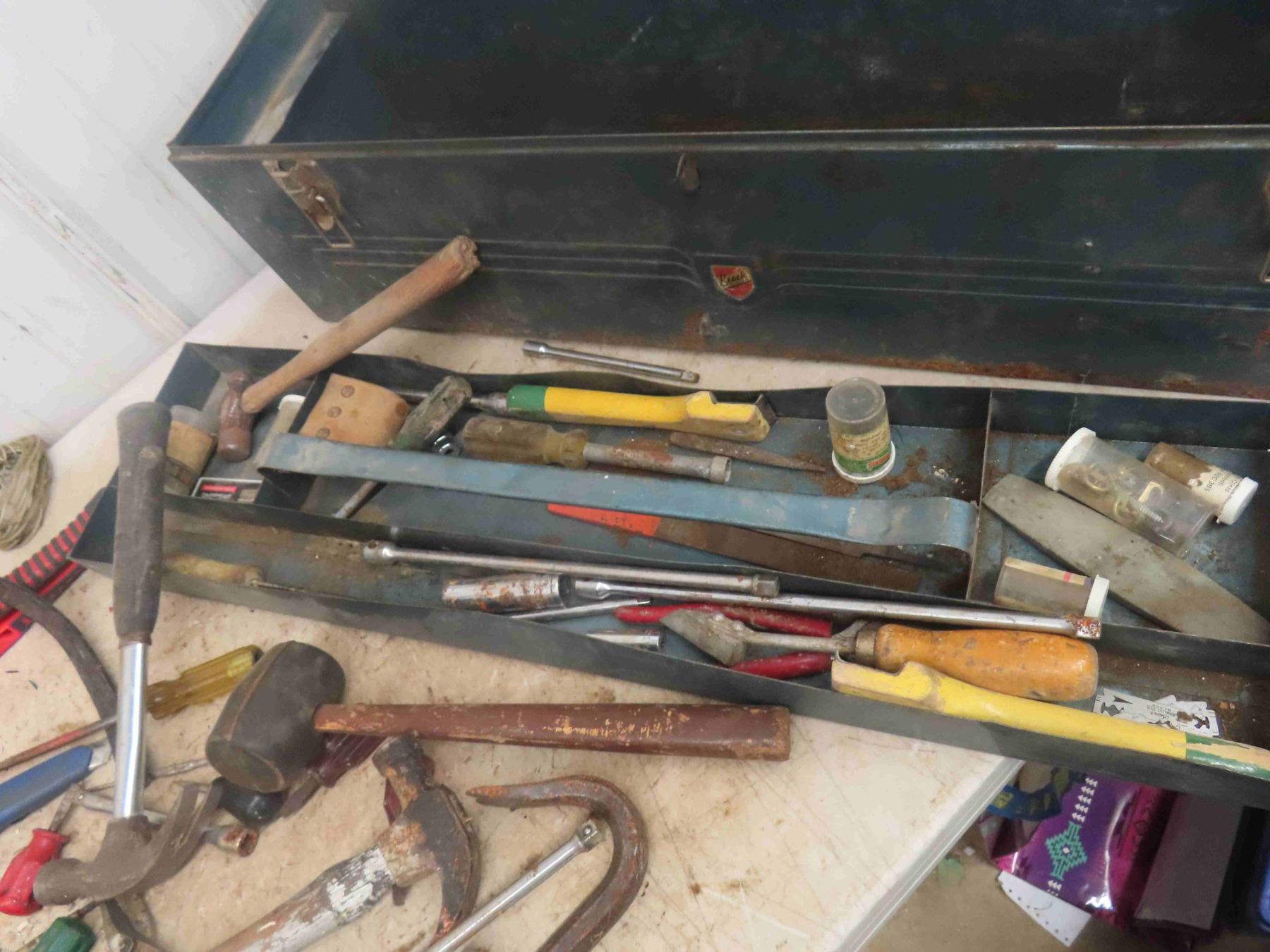 Metal Tool Box 32'' x 8 1/2'' x 8 1/2'' with Odds Tools Wrenches, Ratchet, Sockets, Wrecking Bar, Hammer, Screwdrivers, Plus