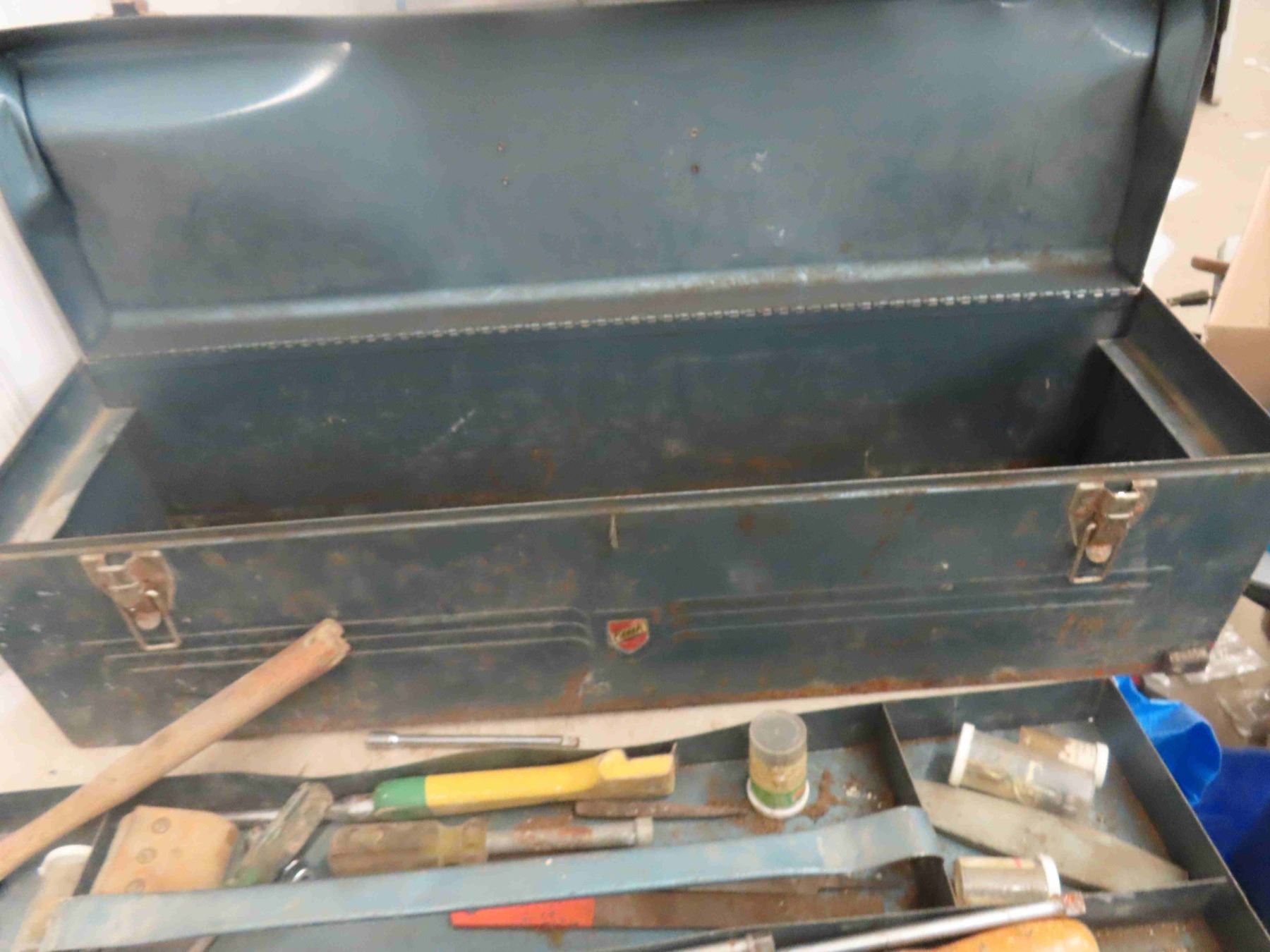 Metal Tool Box 32'' x 8 1/2'' x 8 1/2'' with Odds Tools Wrenches, Ratchet,
