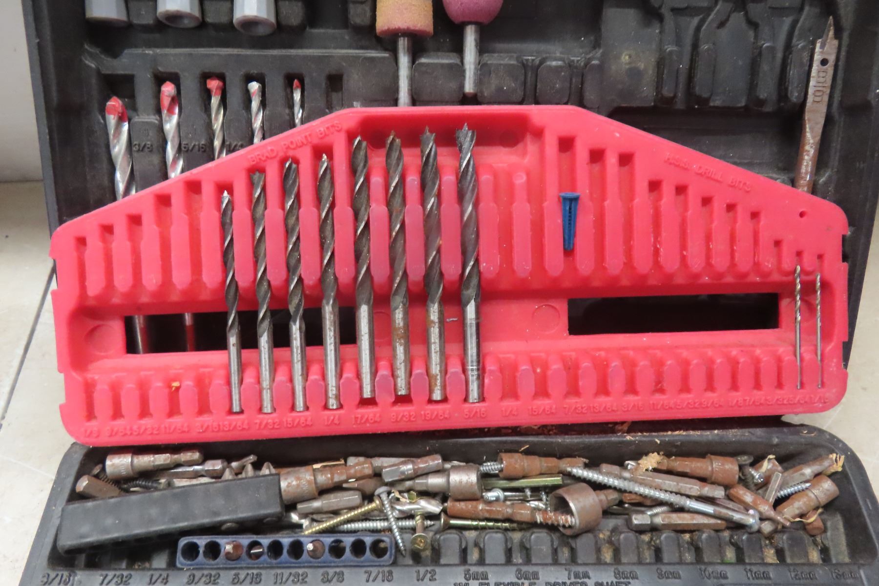 Metal Tool Box, Drill Bits, Screwdriver Bits + Tool Box Clasp Broken