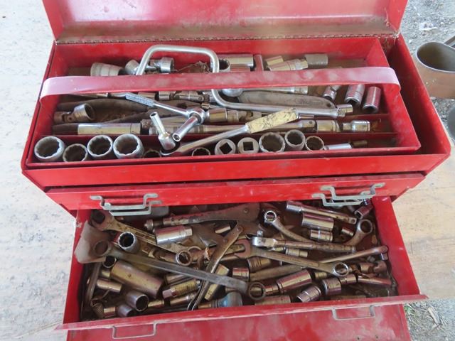 Metal Tool Box - Full, Sockets, Allan Wrenches, Screwdrivers, Wrenches, Wooden Tool Box w Hardware
