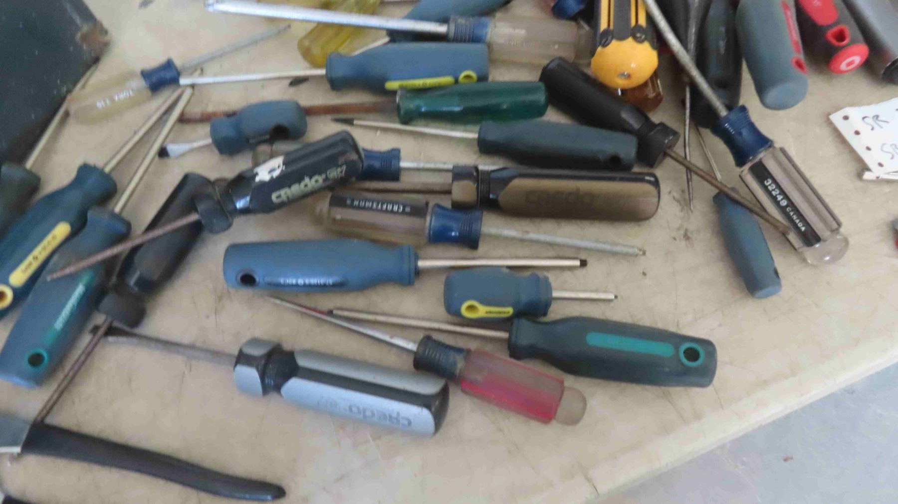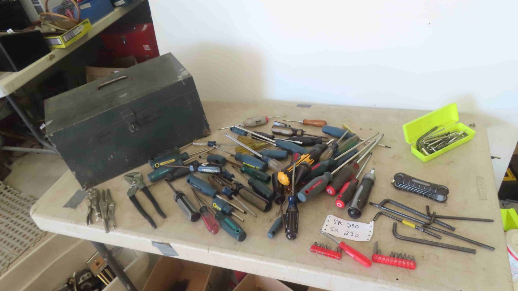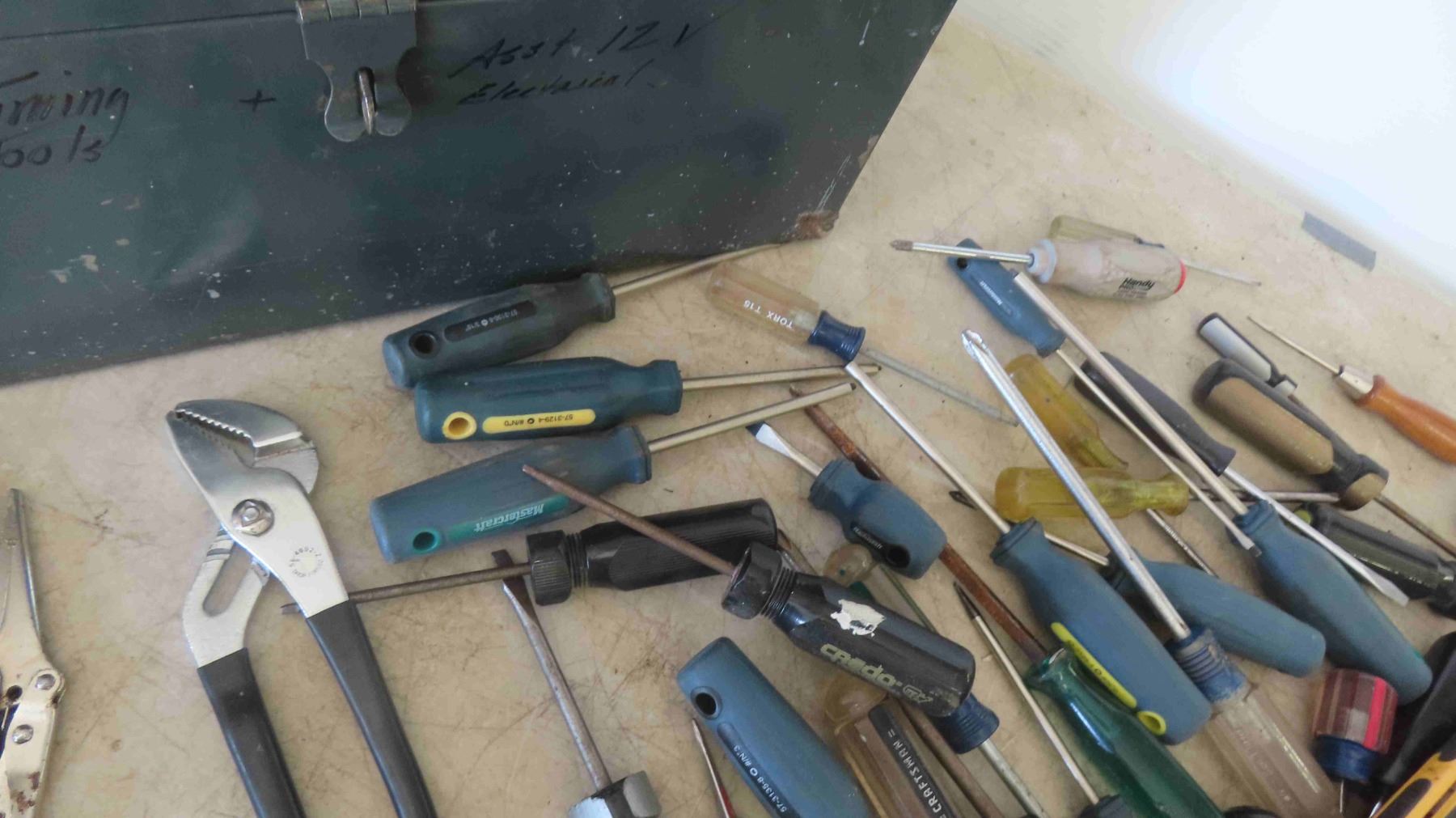 Metal Tool Box, Screwdrivers, Allen Wrenches, Vice Grips, Plus