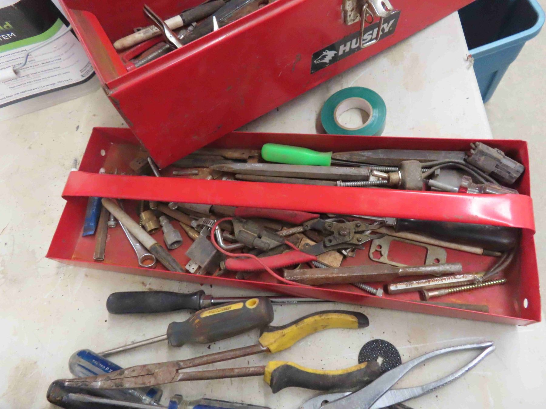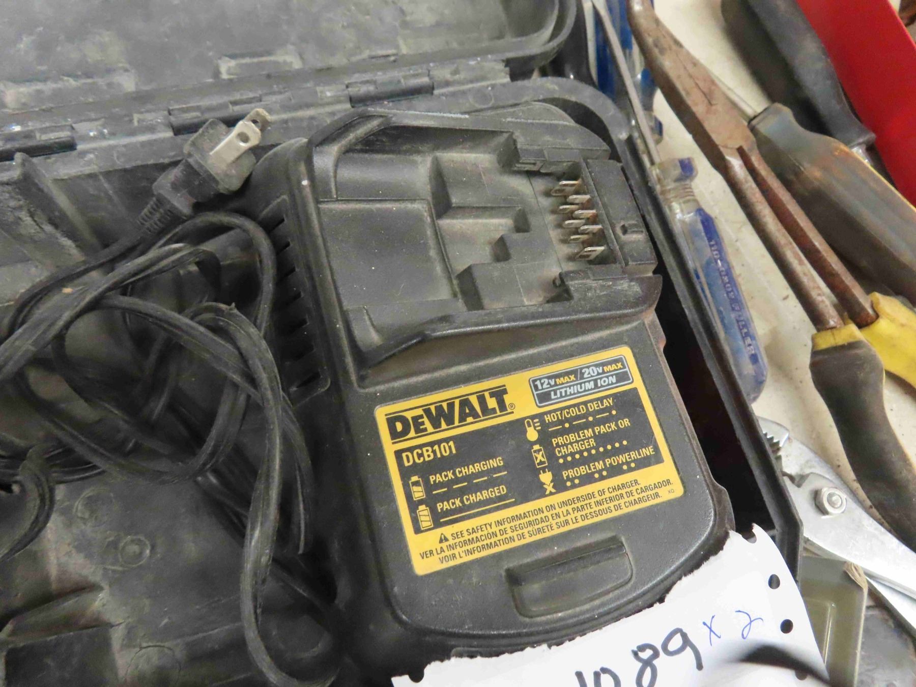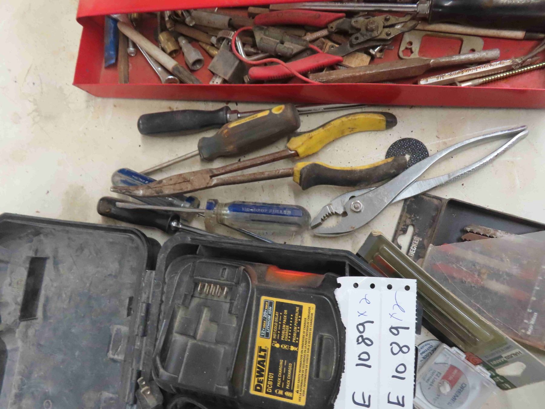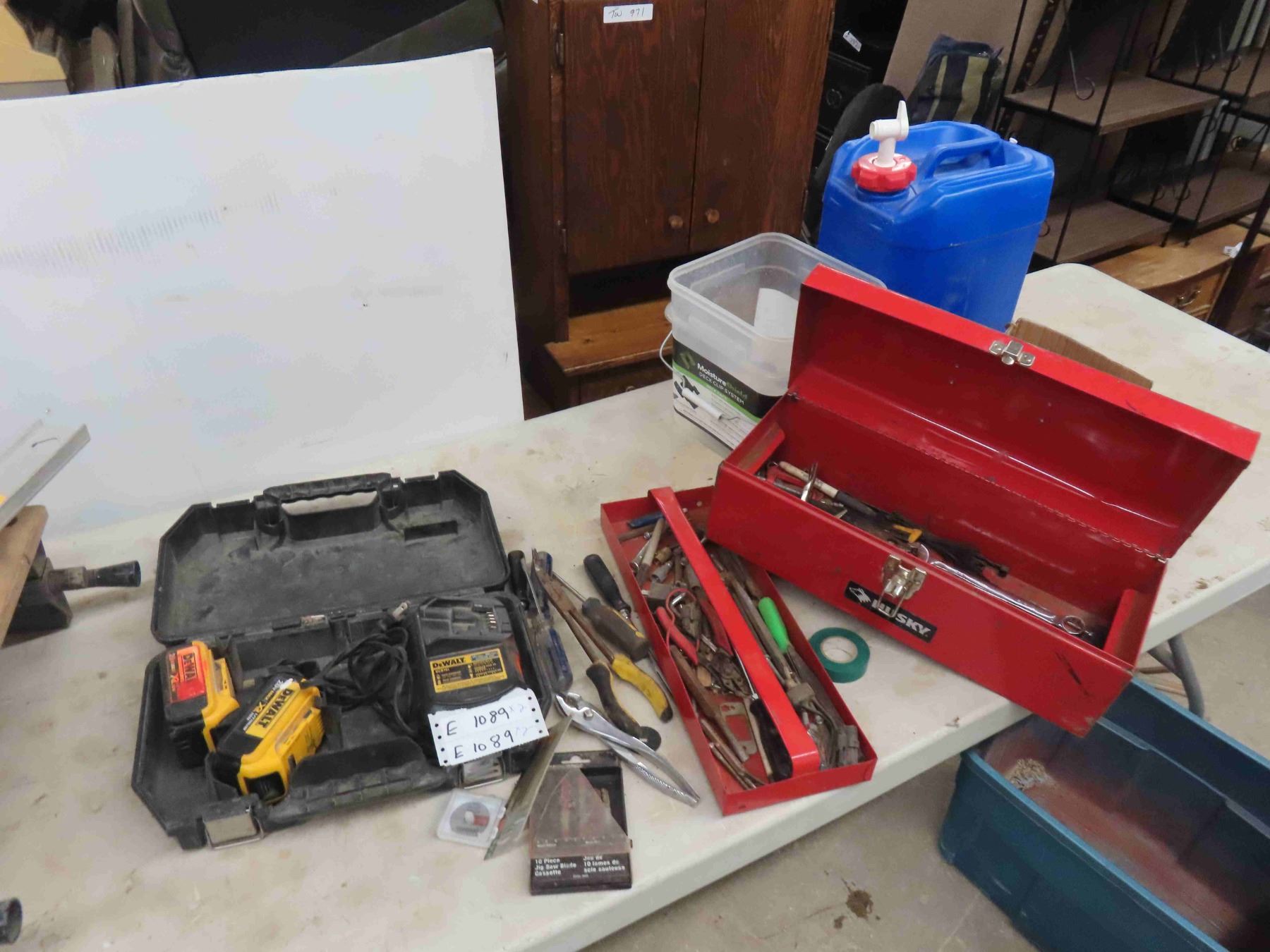 Metal Tool Box , Wrenches, Vice Grips, Screwdrivers , Dewalt DCB 101 20V Charger & 2 Batteries