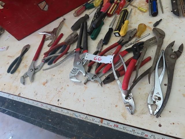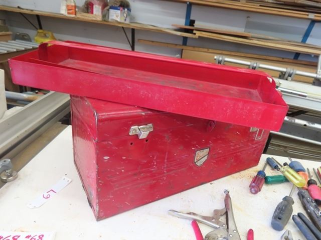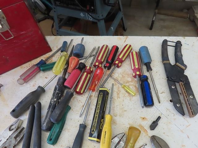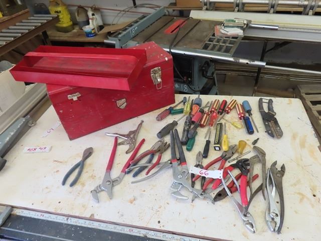 Metal Tool Box with Assortment of Tools ; Plyers, Cutters, Vice Grips, Screw Drivers, Plus