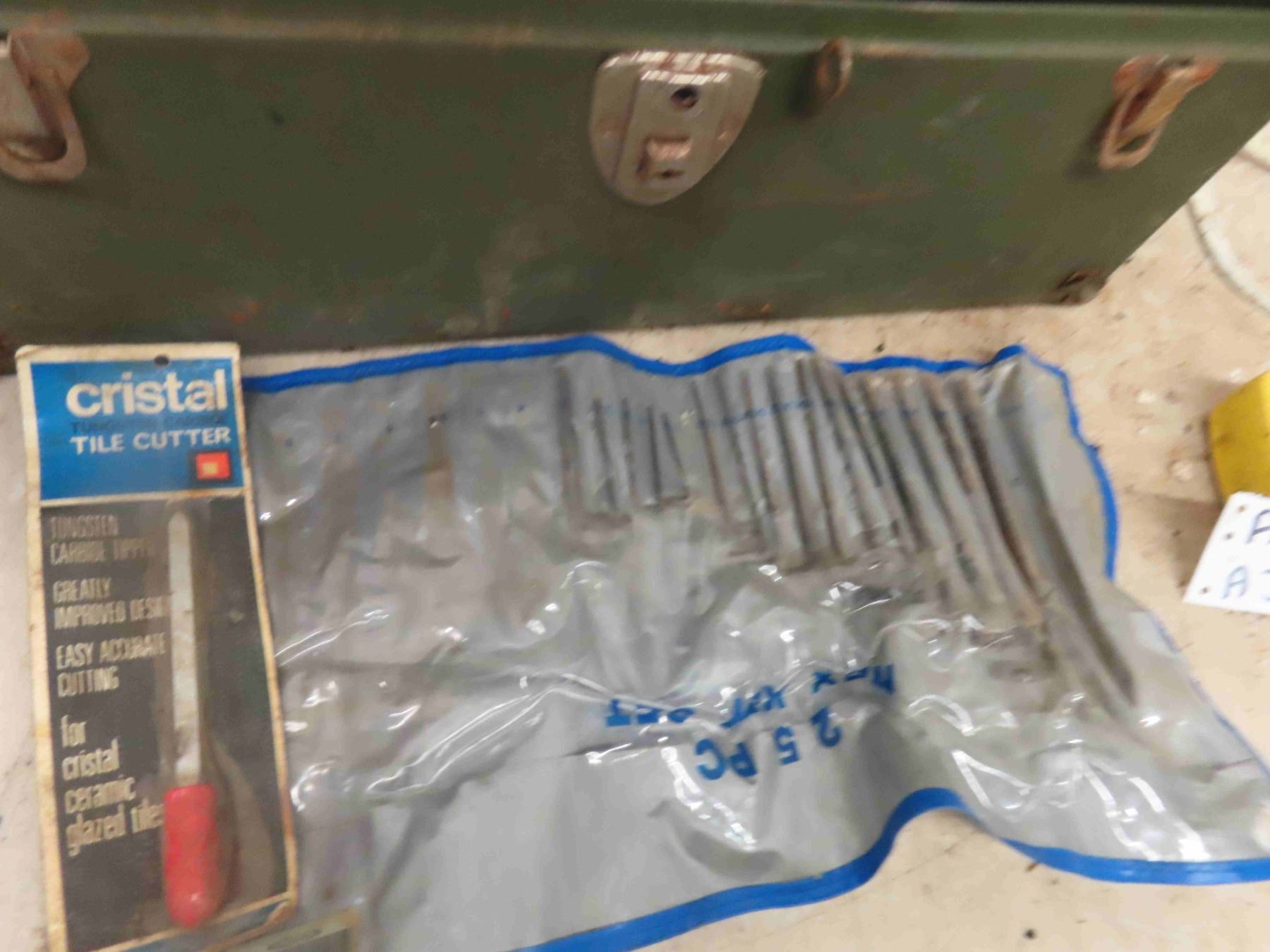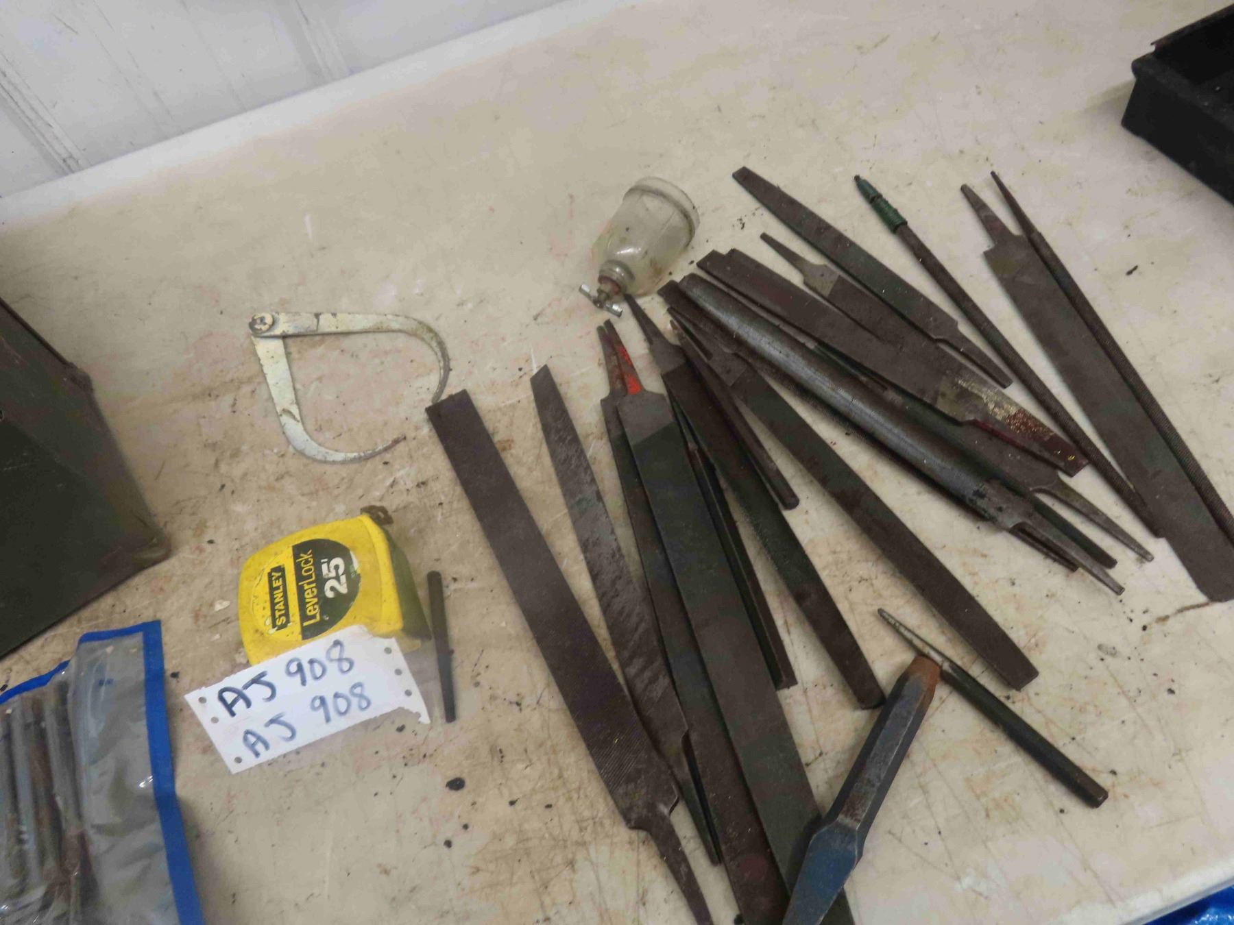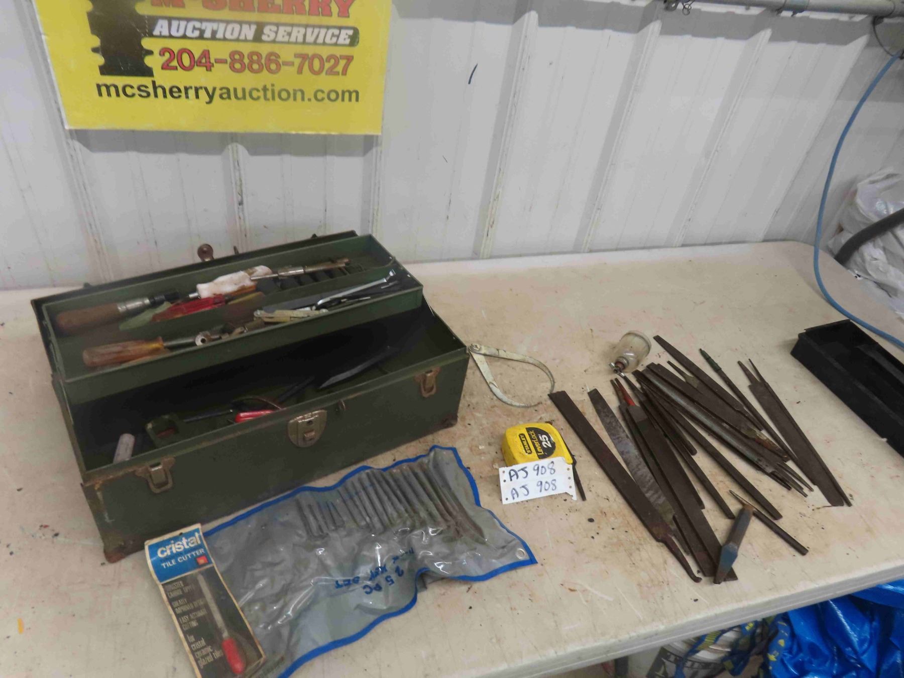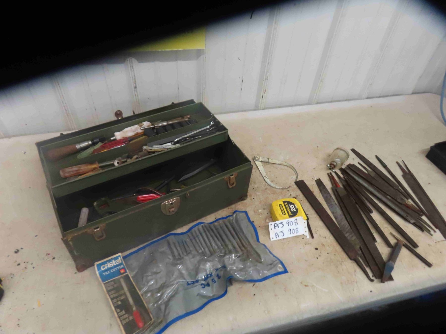 Metal Tool Box with Odds Hand Tools Files, Allen Keys, Plyers, Screw Drivers,