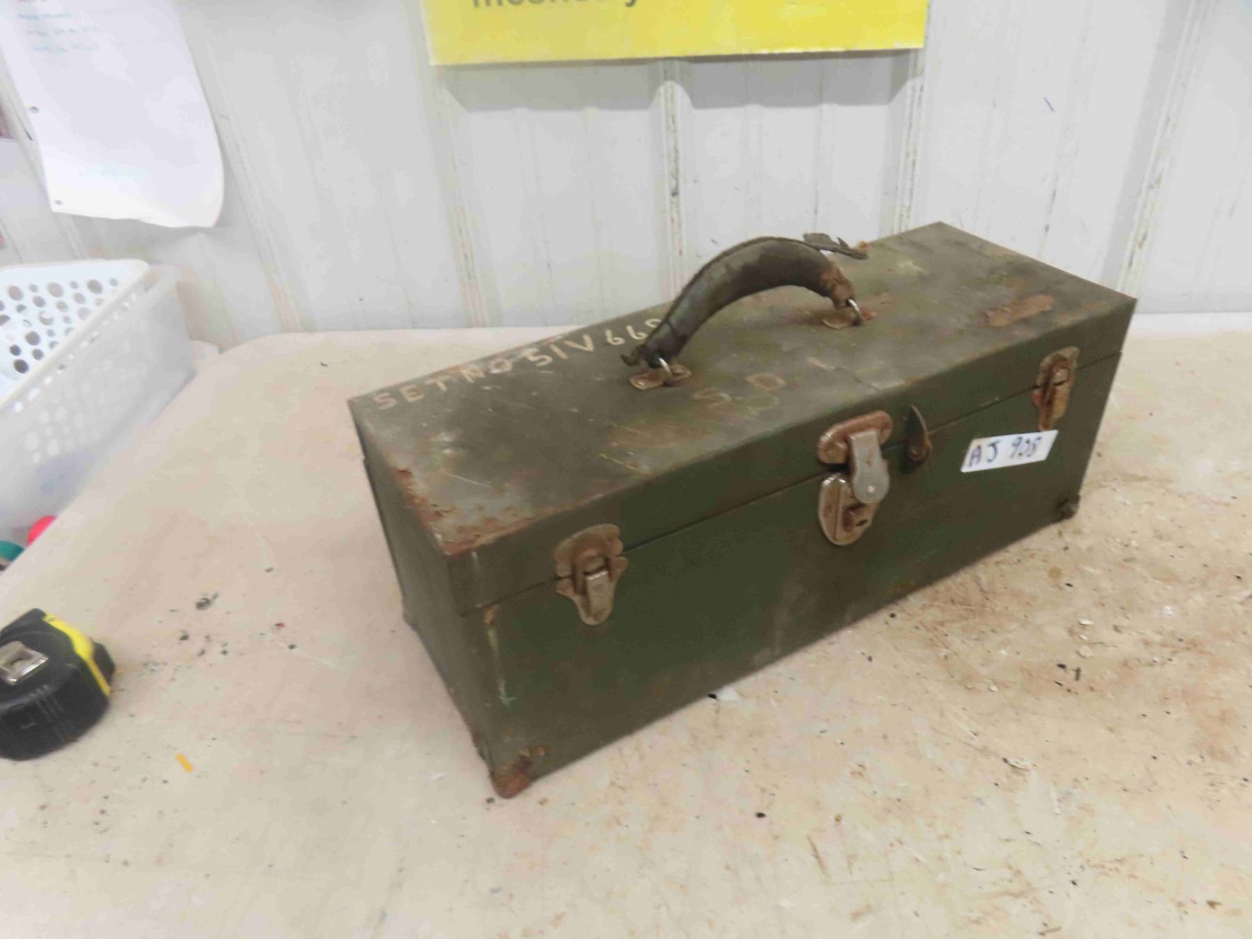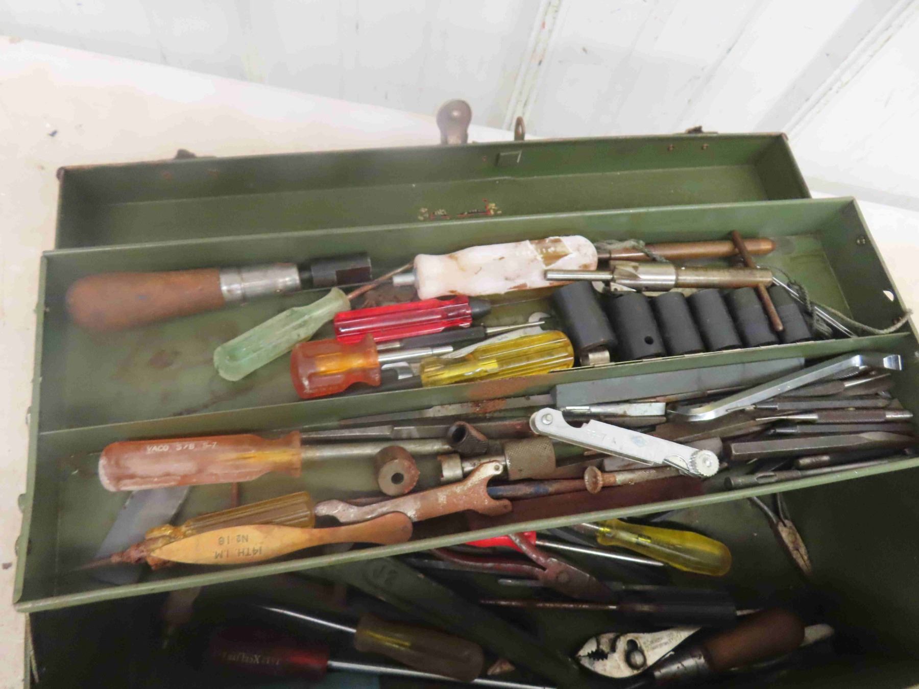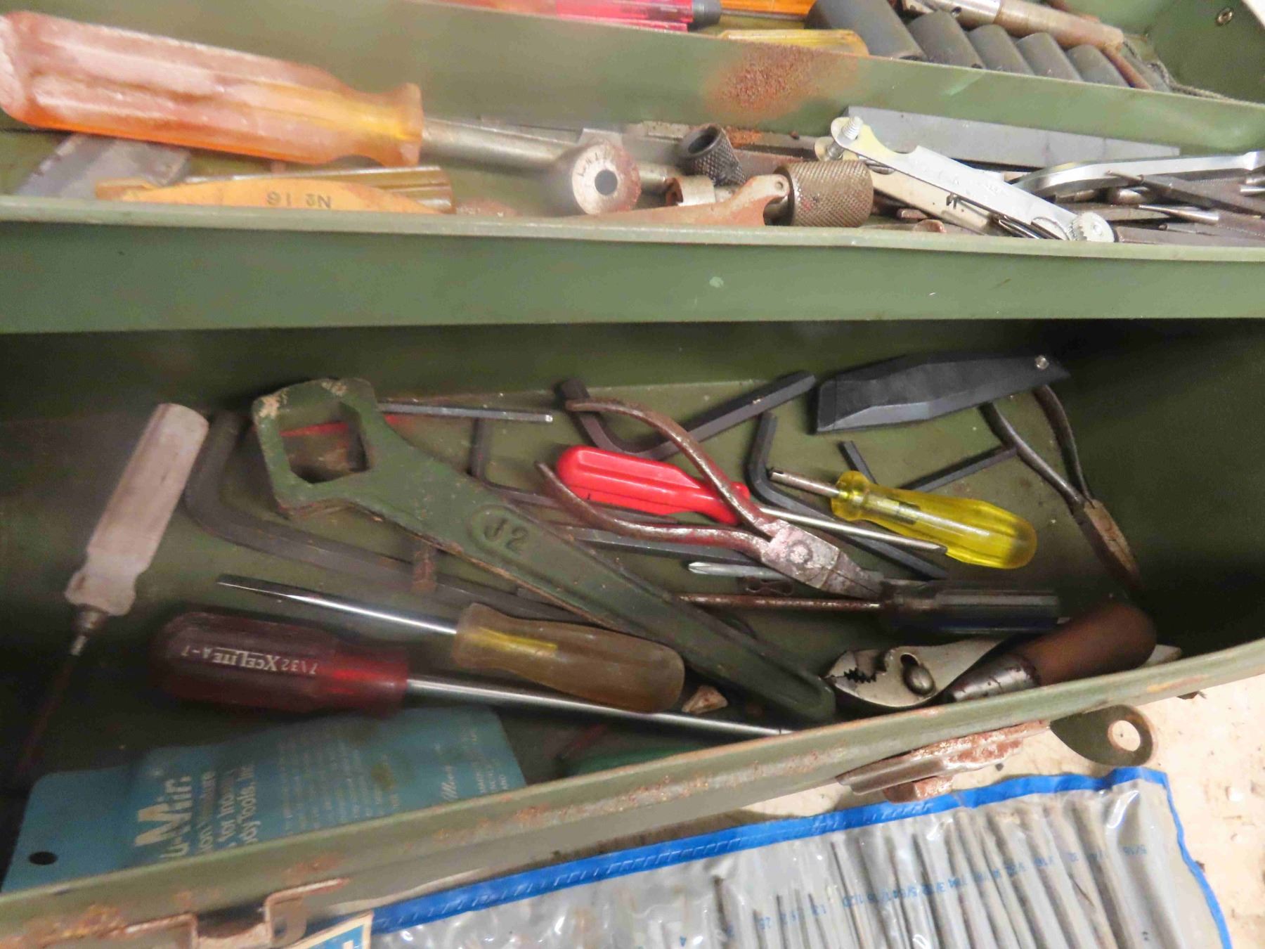 Metal Tool Box with Odds Hand Tools Files, Allen Keys, Plyers, Screw Drivers, Sockets, Plus
