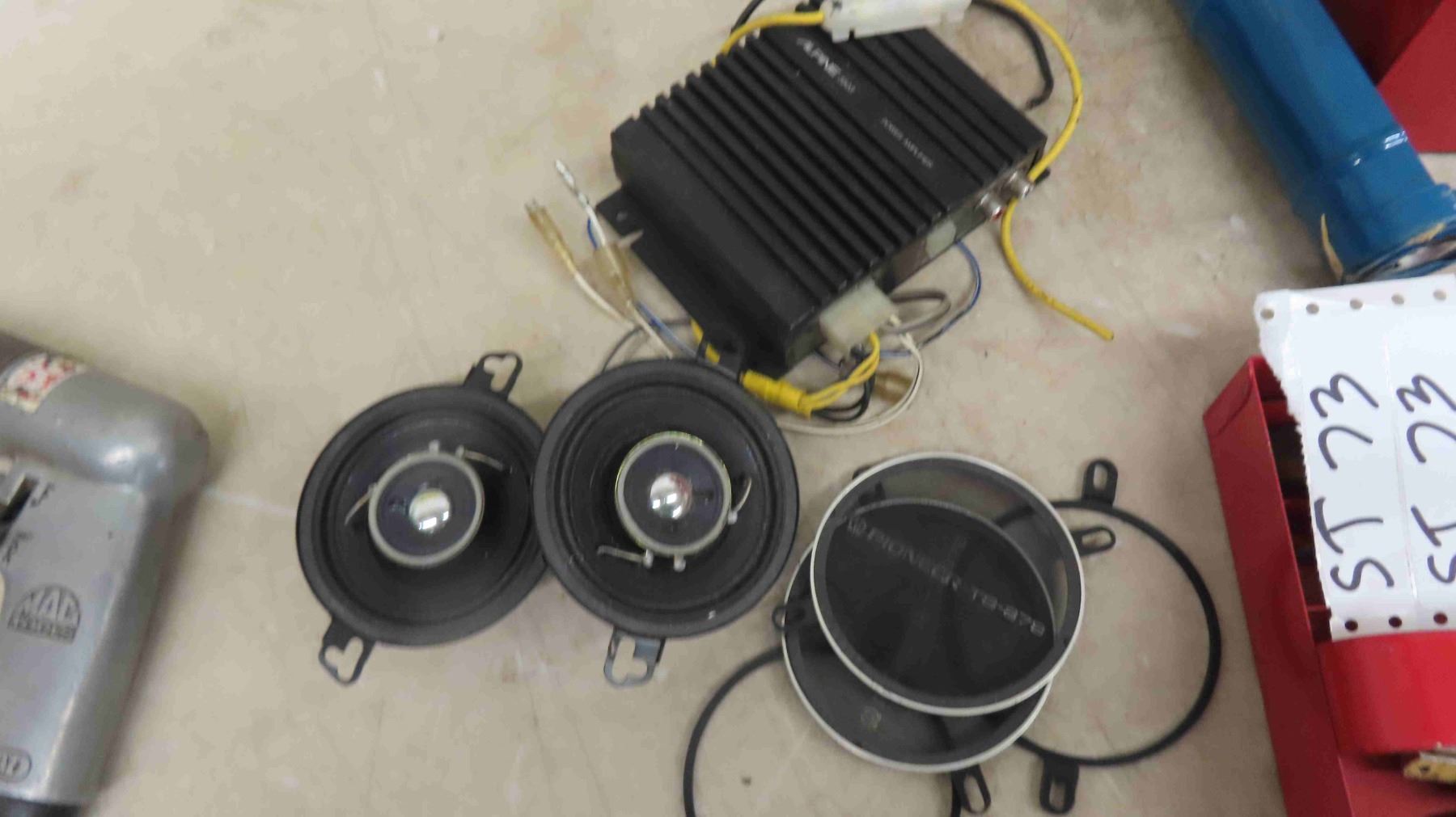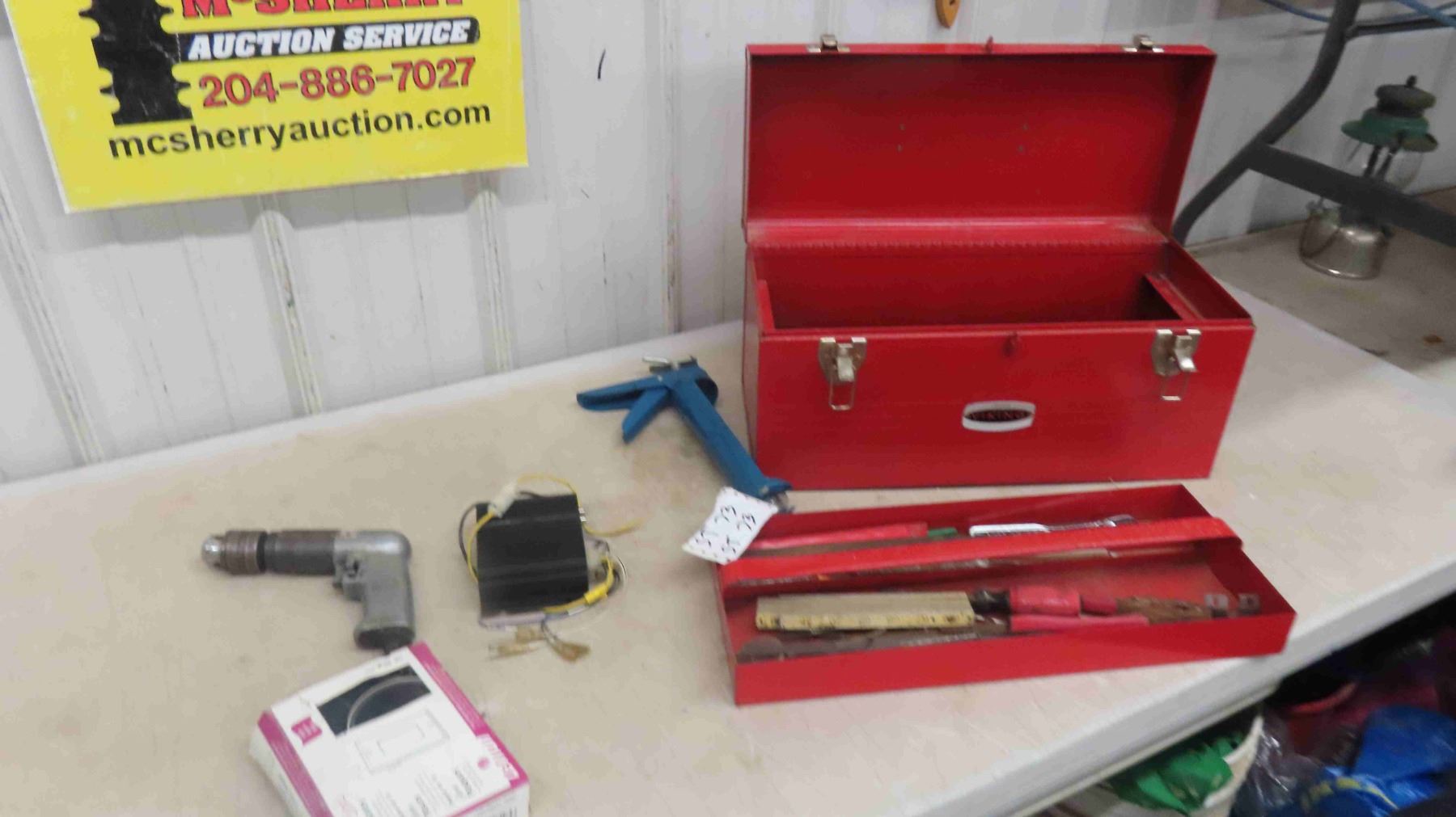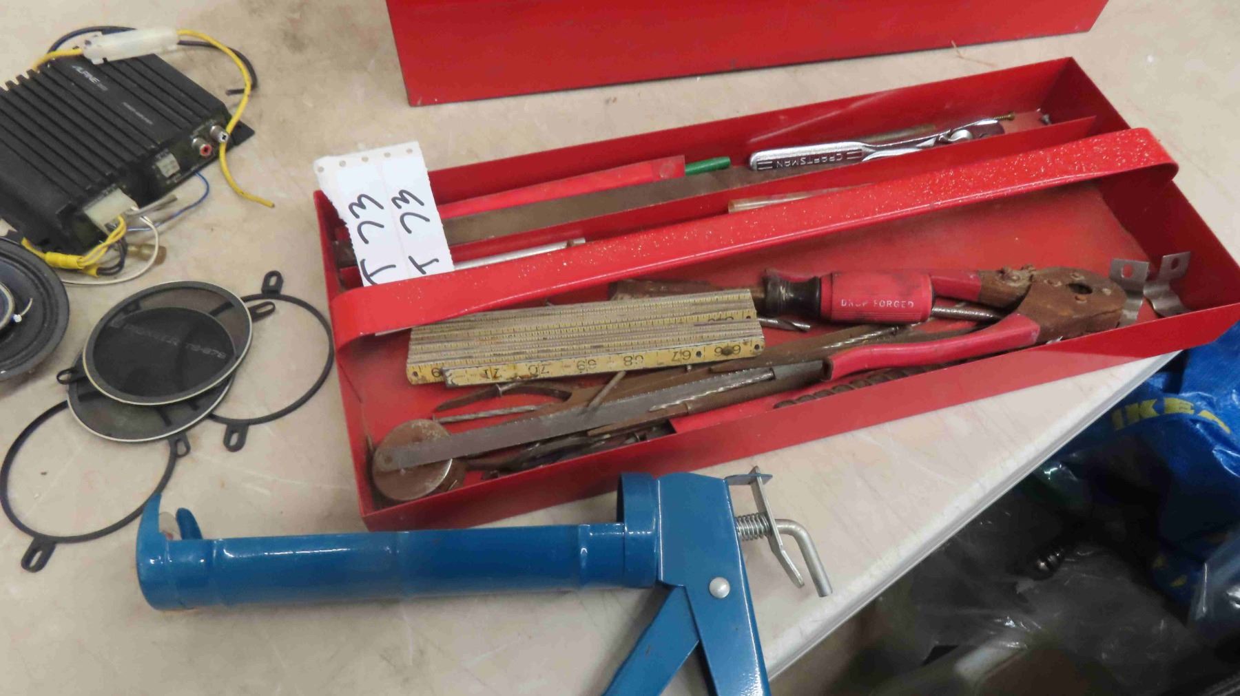 Metal Tool Box with Tools including Mac Air Drill , Alpine Auto Amp , Speakers, Plus