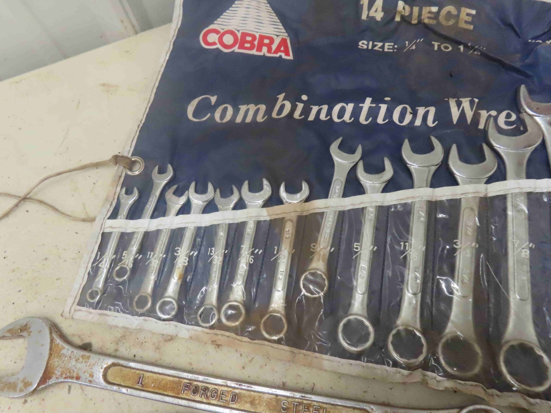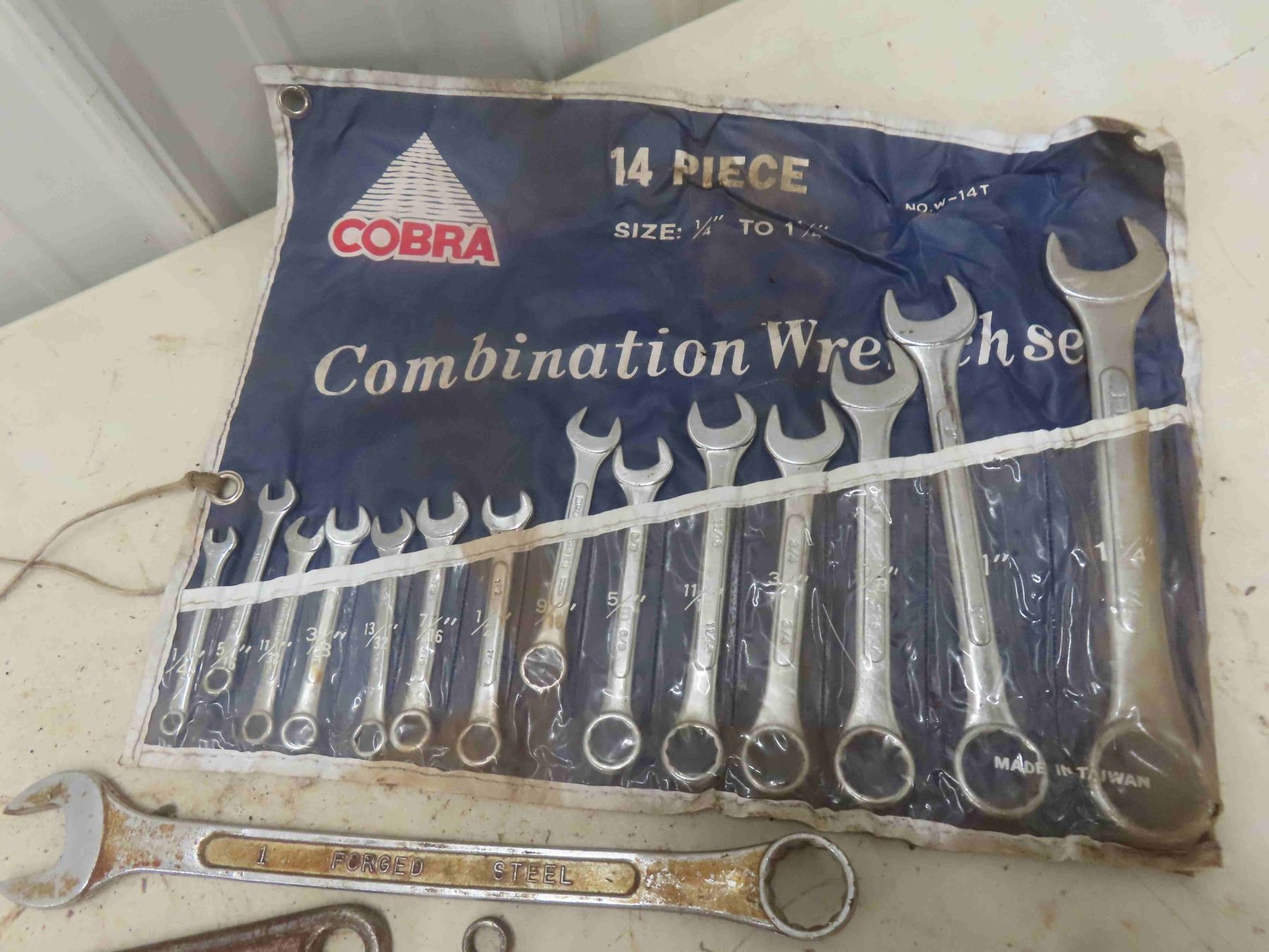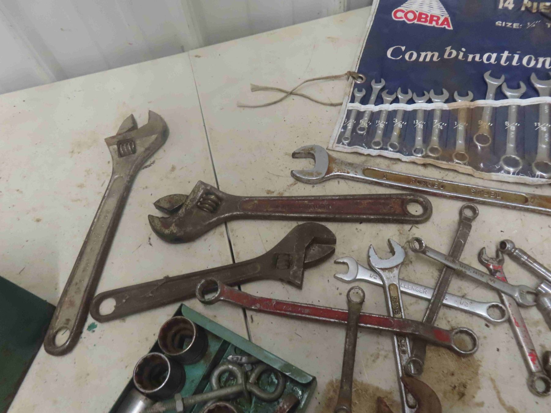 Metal Tool Box with Wrenches, Some Sockets & Air Gauges