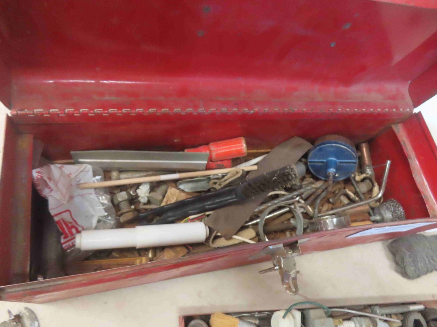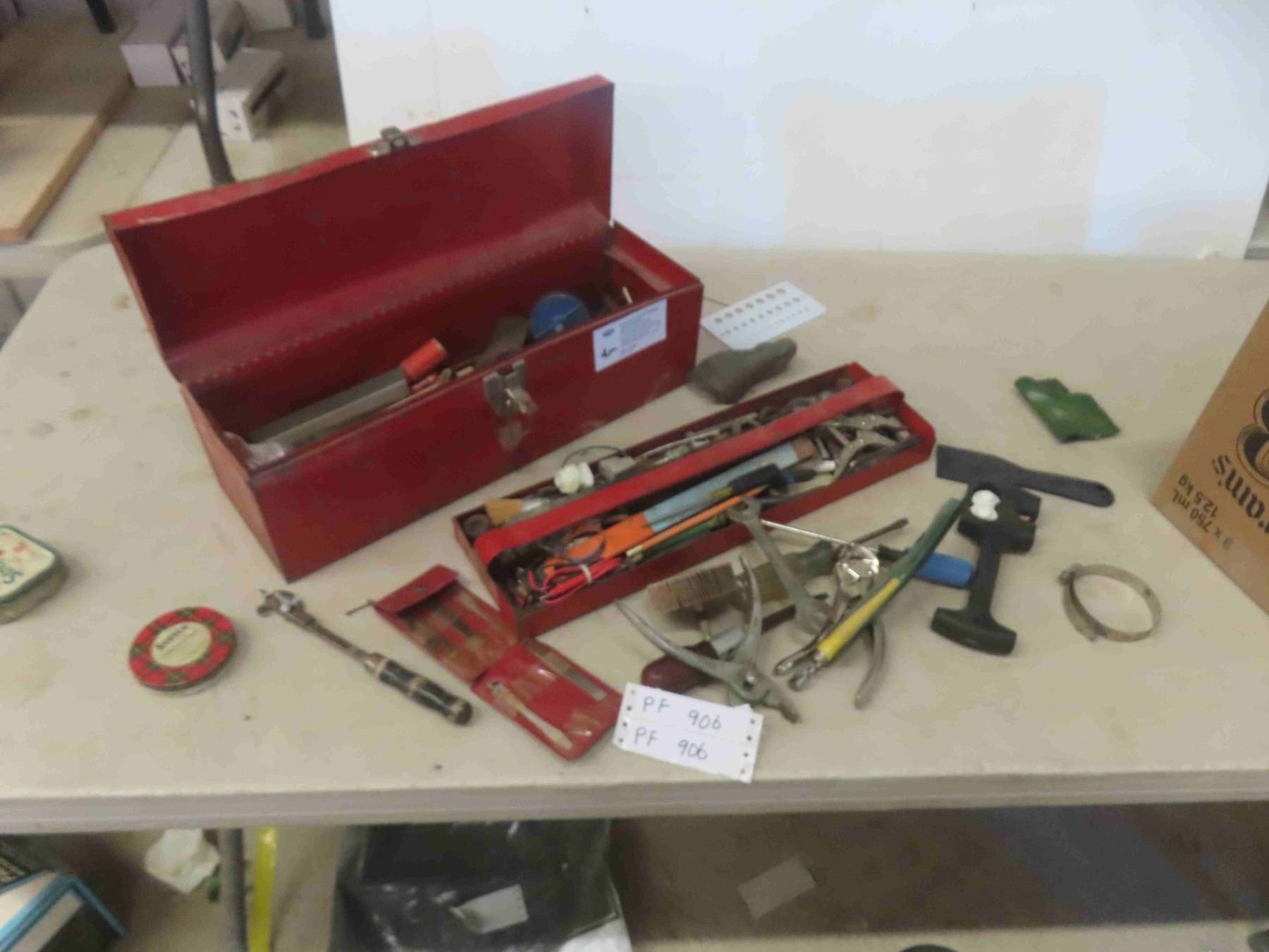 Metal Tool Boxes with Odds Hand Tools and Hardware