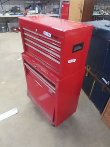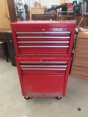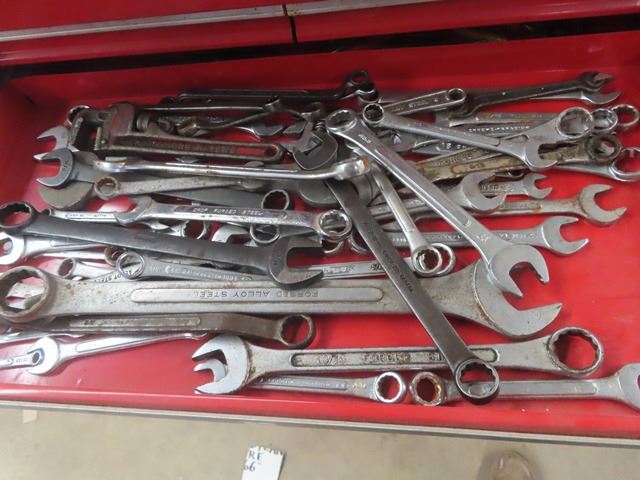 Metal Tool Cabinet Full with : C- Clamps, Crescent Wrenches, Allen Keys, Chisels, Punches, Wren
