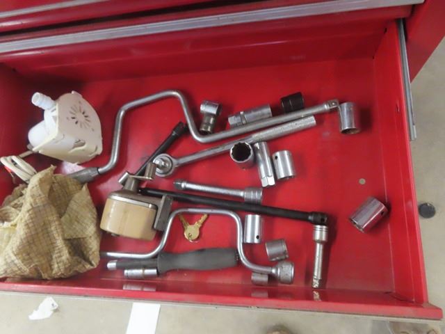 Metal Tool Cabinet Full with : C- Clamps, Crescent Wrenches, Allen Keys, Chisels, Punches, Wrenches, Pliers, Files, Socket Set plus more