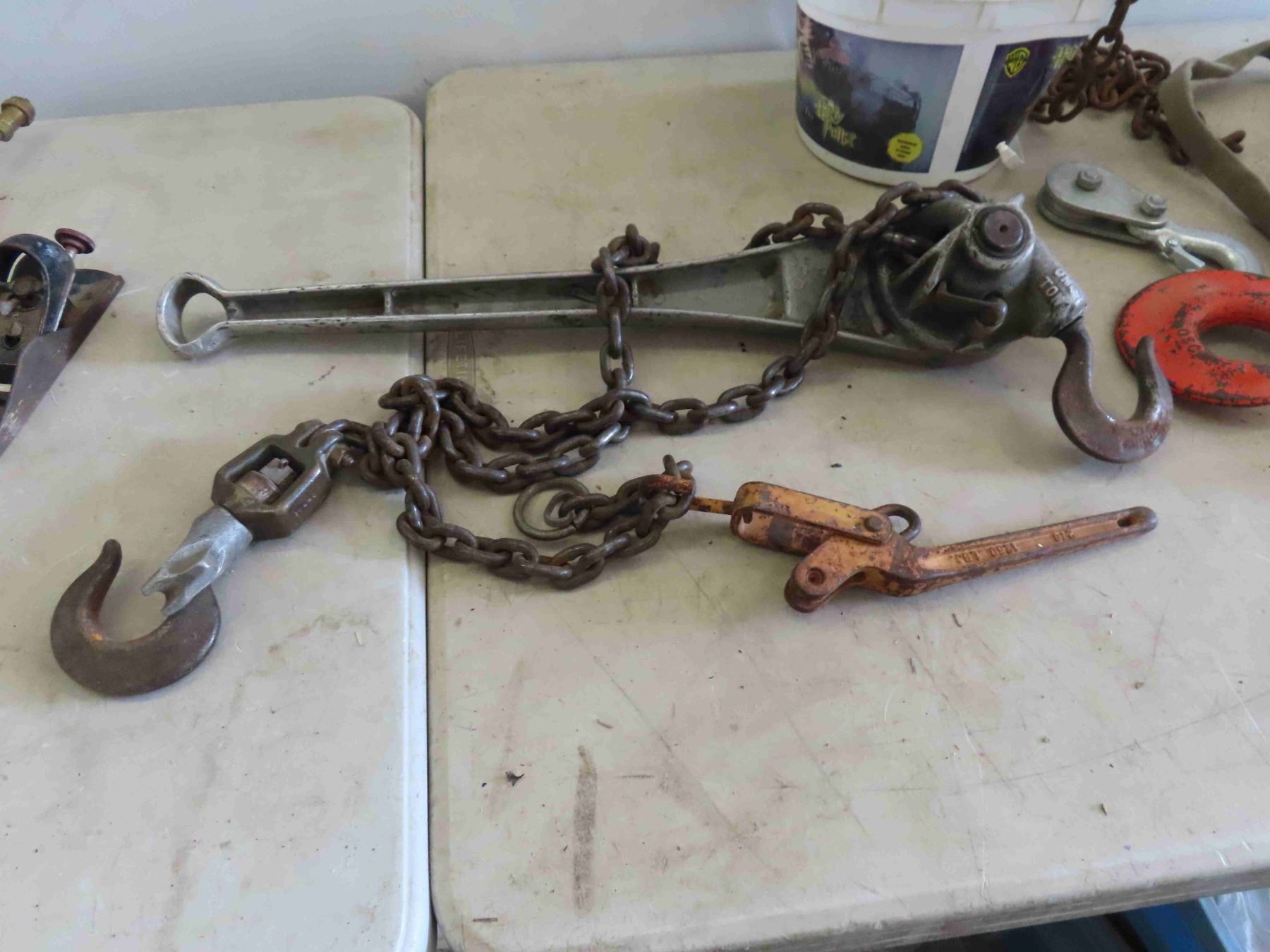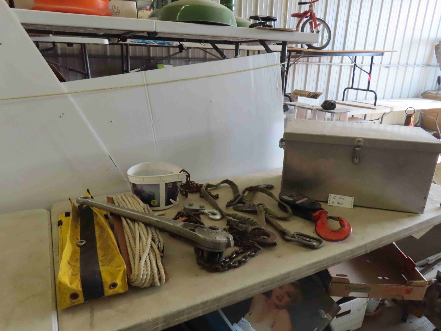Metal Tool Case 24'' x 12'' x 12 3/4'' , Chains, Winch, Snap Block, Pulley