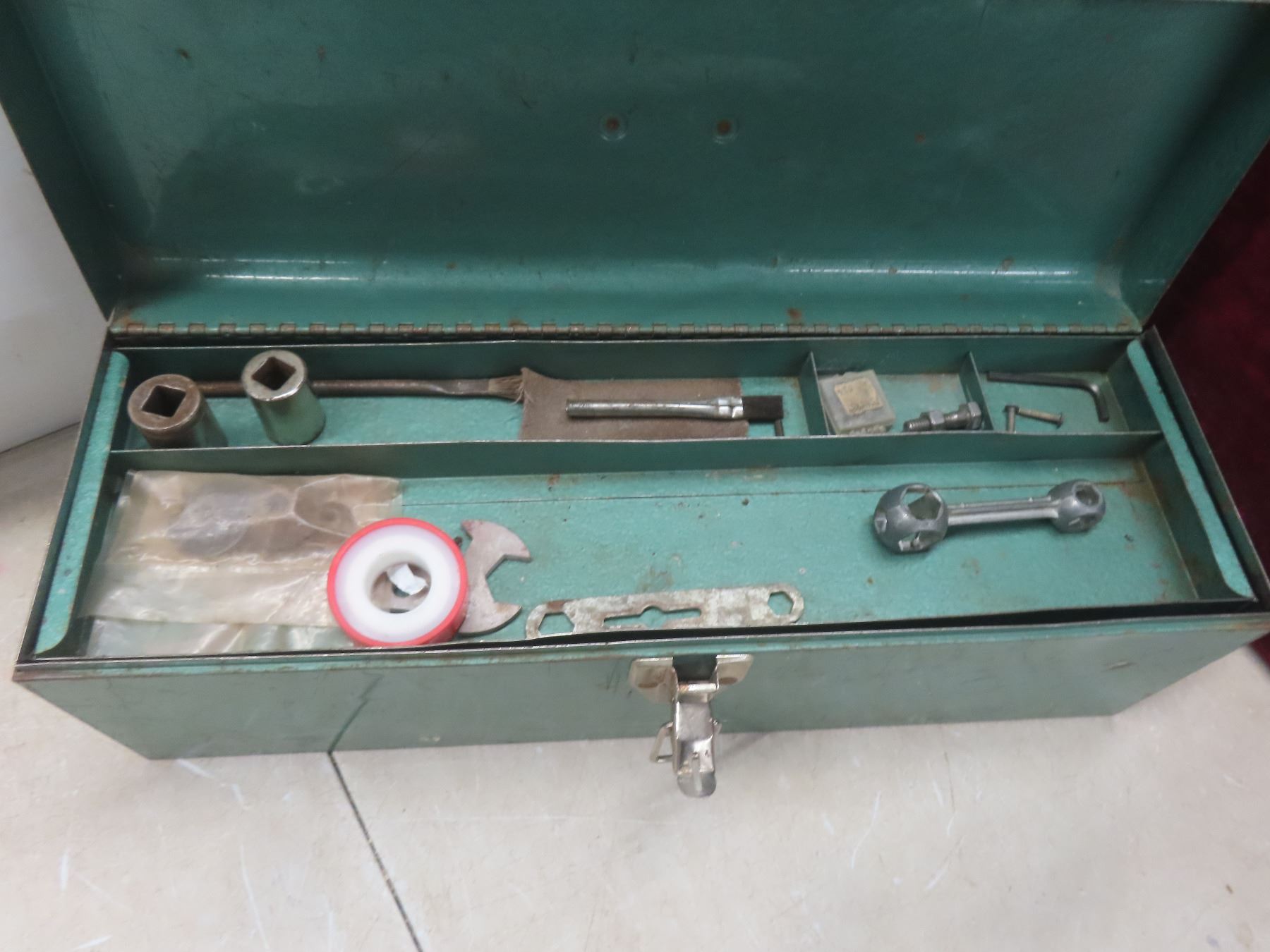 Metal Toolbox With Pliers, Wrenches, Screwdrivers, Pipe Wrenches, Crescent Wrench, Teflon Tape +
