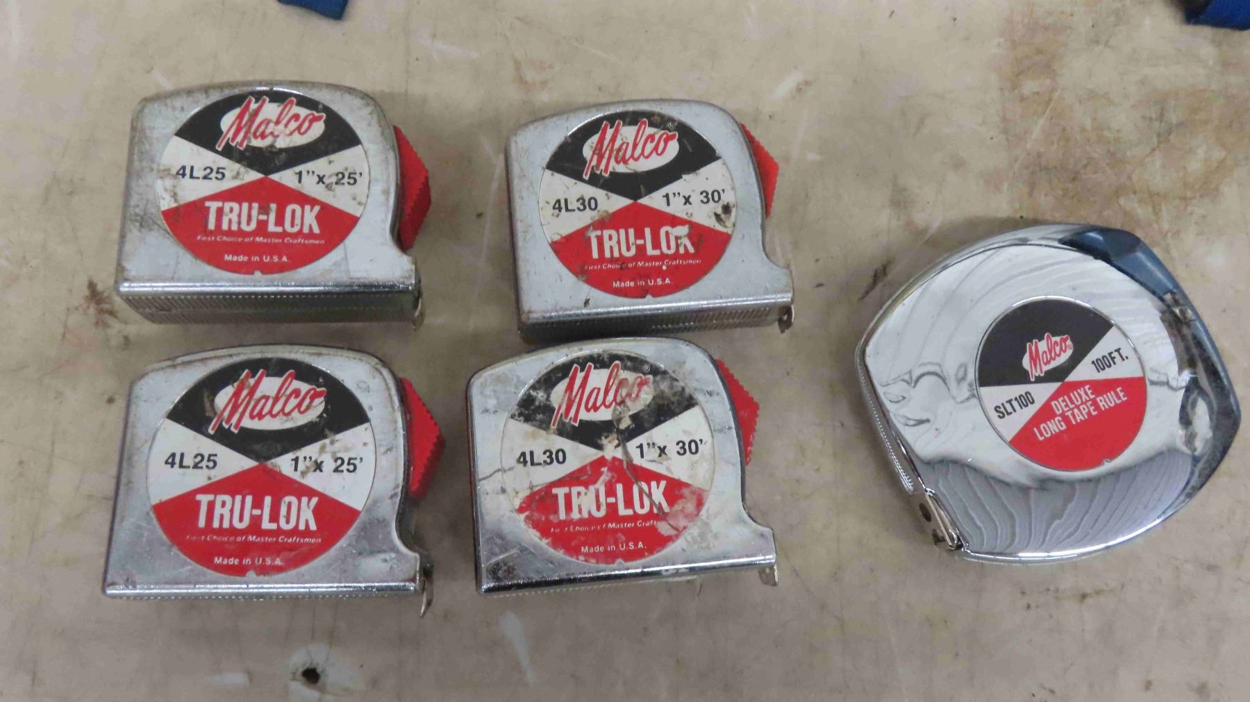 Metal Toolbox with Tin Snips, Wrenches, Sockets, Tape Measures 25ft 30ft 100ft