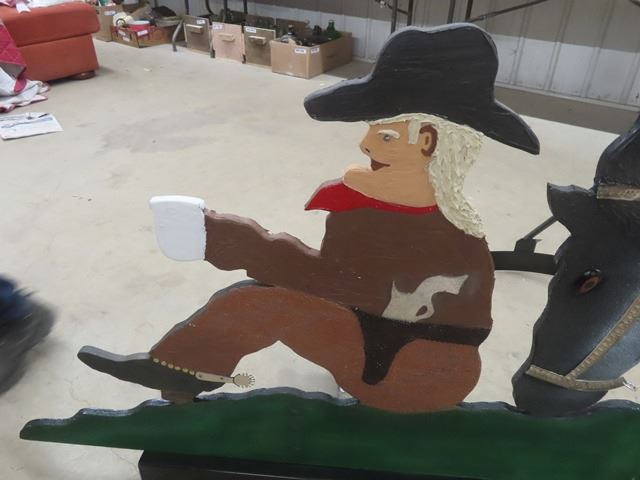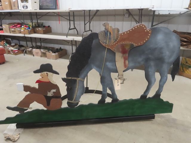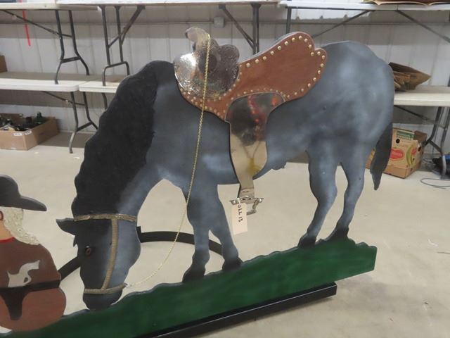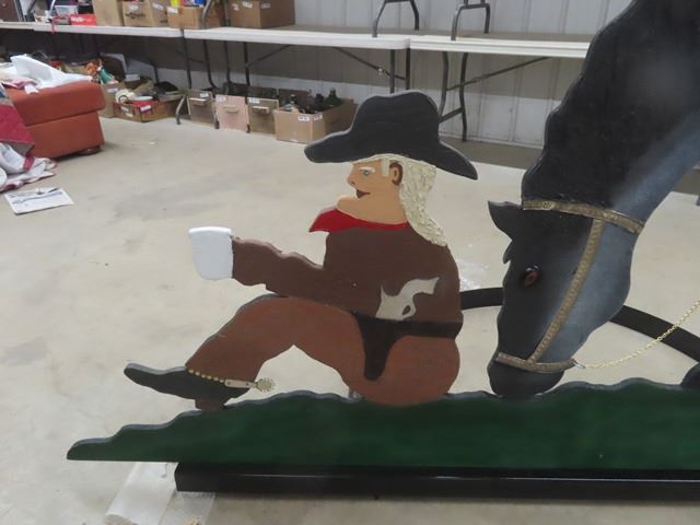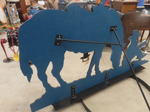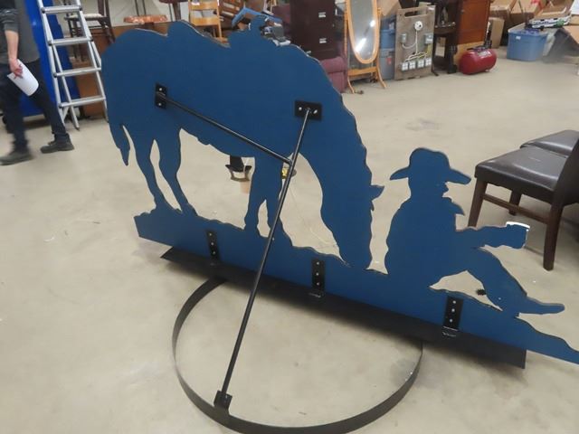 Metal + Wood Art- Cowboy with Horse on Large Base 51"×90"