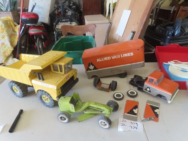 Mighty Tonka Truck, Tonka Grader, Allied Van Lines Metal Semi - missing Tires