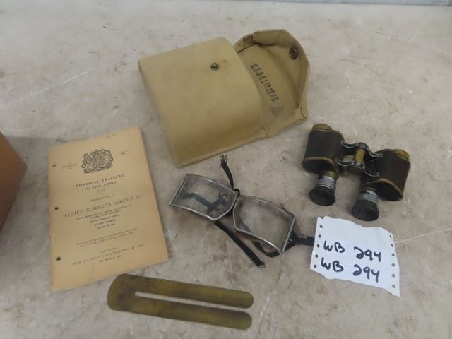 Military Case with German Binoculars & Motorcycle Goggles plus more
