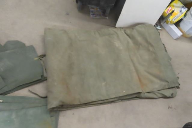 Military Tent? Canvas + Other Canvas - Very Large piece of Canvas - Sherman Tank Cover 96" x 190" Insulation Panel??