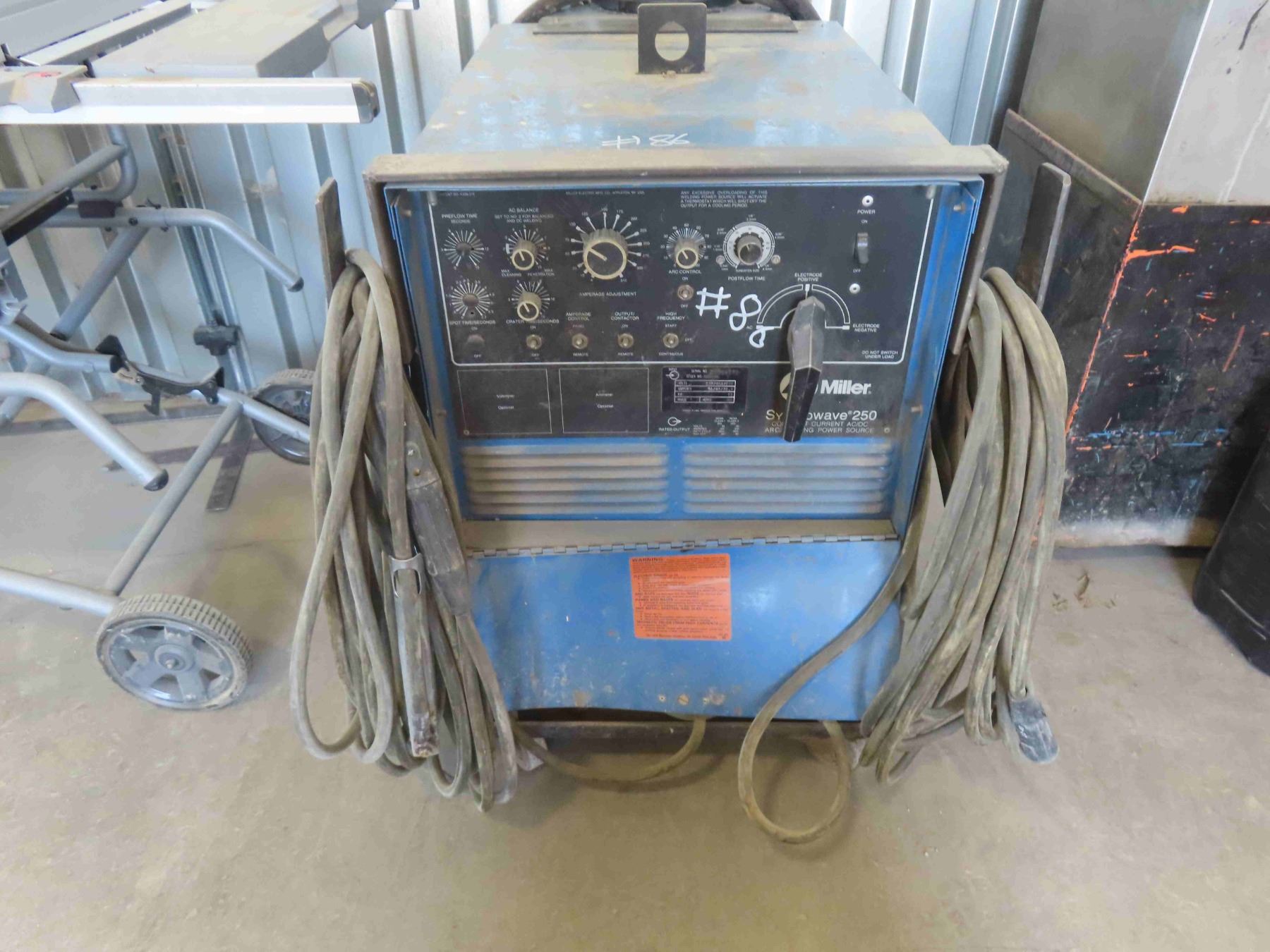 Miller Syncrowave 250 AC/DC Welding Power Source Welder with Power Cable with Rolling Cart \