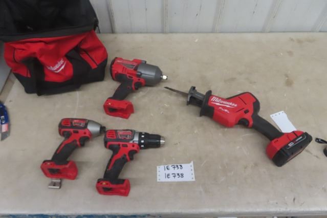 Milwaukee M18 Tool Kit in Bag - NO Charger ; 1/2" Drill, Impact Driver, Impact Wrench, Hackzall