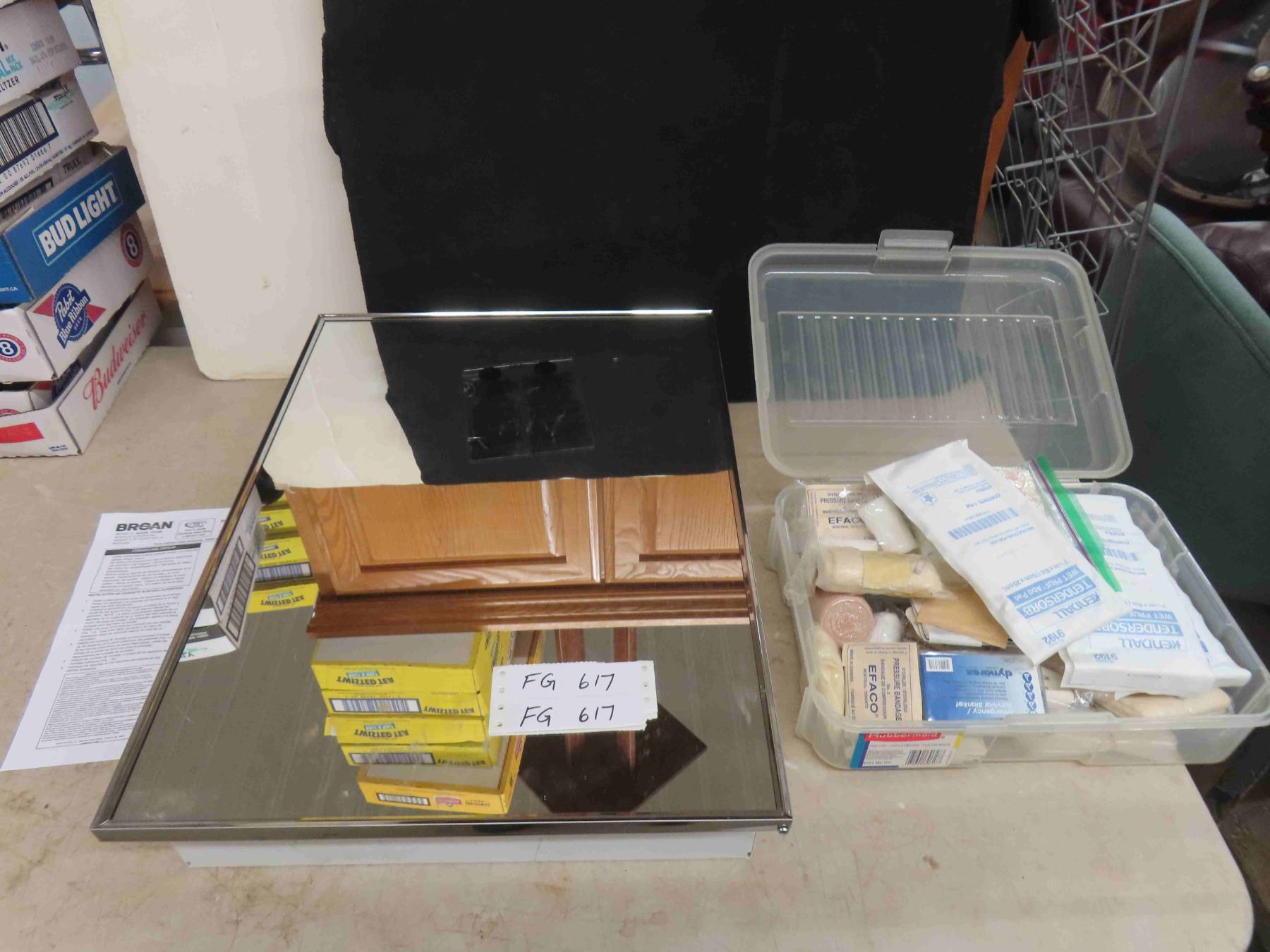 Mirrored Medicine Cabinet 4.5" x 16" x 22" - No Interior Shelves & Box of 1st Aid Products