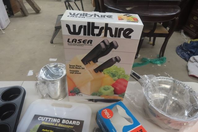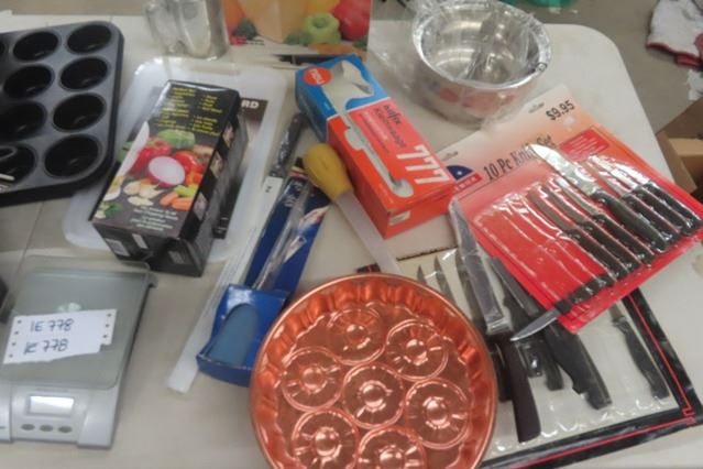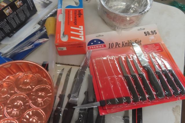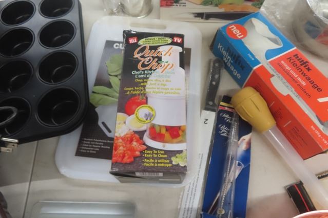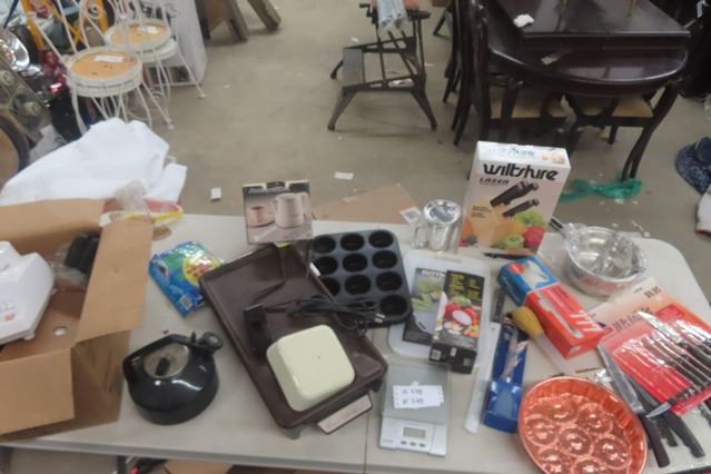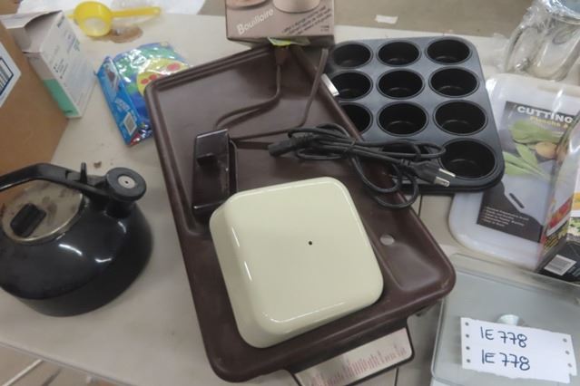 Misc. Kitchen Items ; Griddle, Blender, Scales, Iron, Knives, Baking Pans plus more
