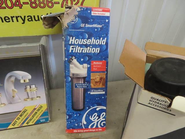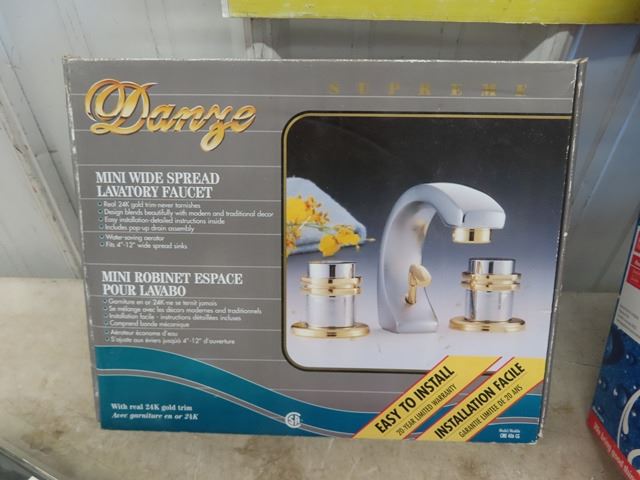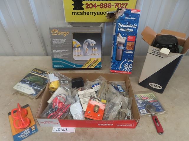 Misc. Lot ; Bathroom Taps, Water Filter, Wrench, Rope Light, Drawer Pulls plus more