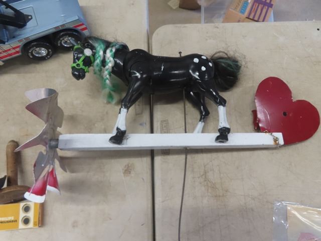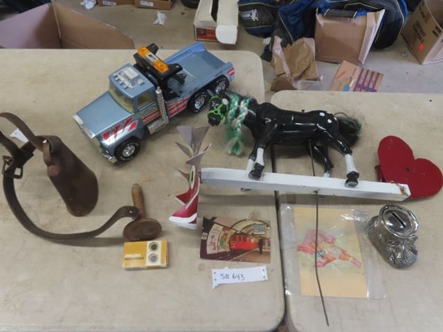 Miscellaneous Lot ; Toy Truck, Cow Bell, Horse Windmill