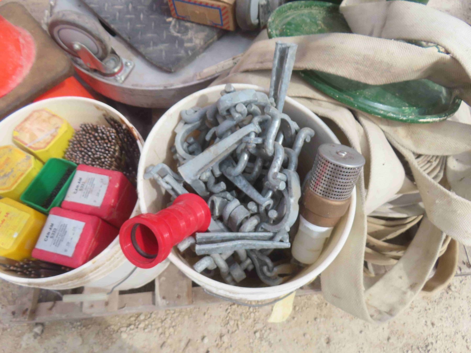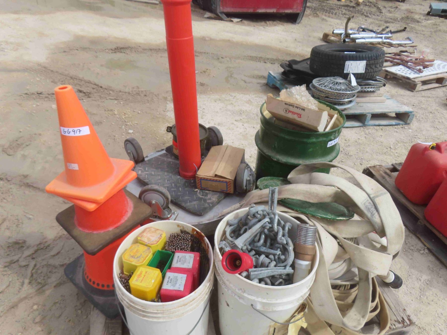 Miscellaneous Pallet: Fire Hose, Pylons, Gauges, Welding Rods,