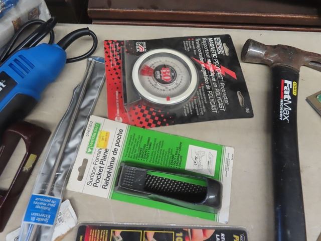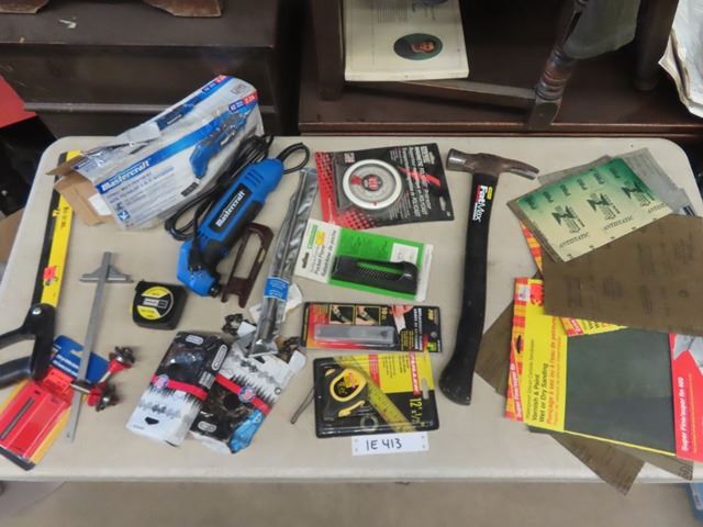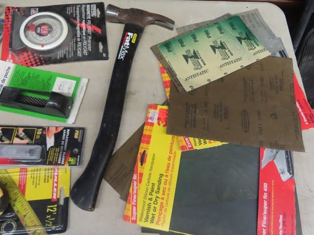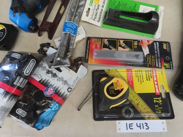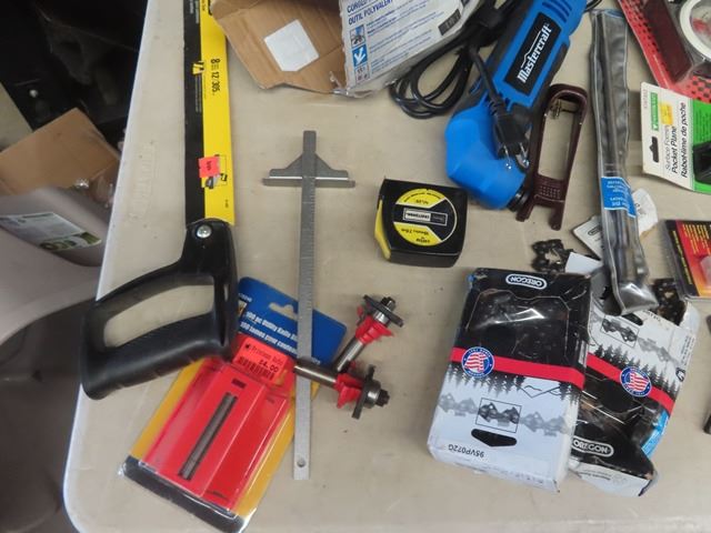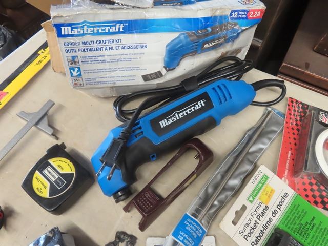 Miscellaneous Tools; Mastercraft Corded Multi Tool Fat Max Hammer, Tape Measure, Chainsaw Chain, Sand Paper, Blades plus more