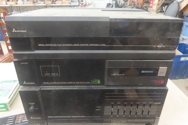 Mitsubishi Stereo System, Linear Track Turntable, Cassette Deck, Intelligent Receiver DA -R504 with