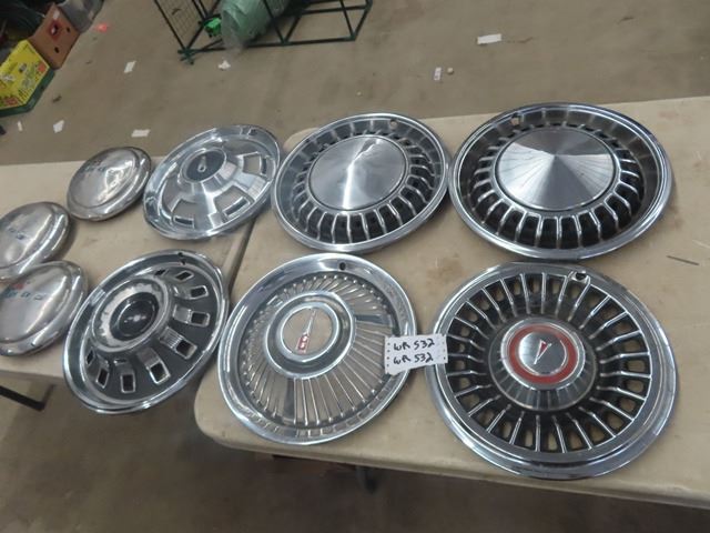 Mix of 8 Hubcaps - Ford, Pontiac plus others
