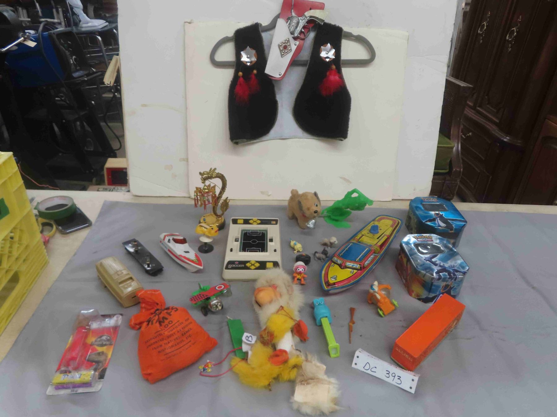 Mix of Toys from - 1950s, 60s, 70s, + 90s & Children's Sheriffs Vest with Gun + Holster