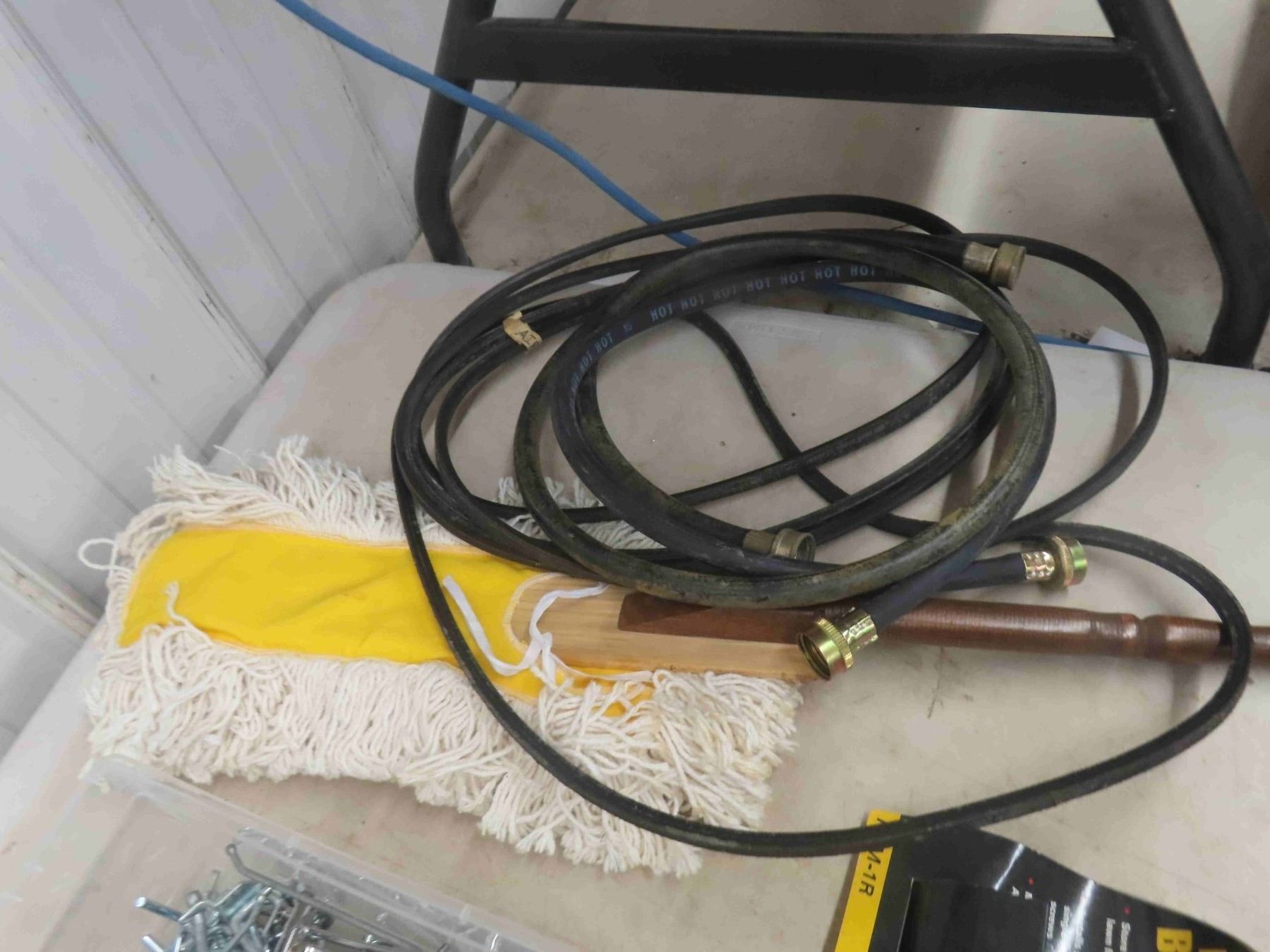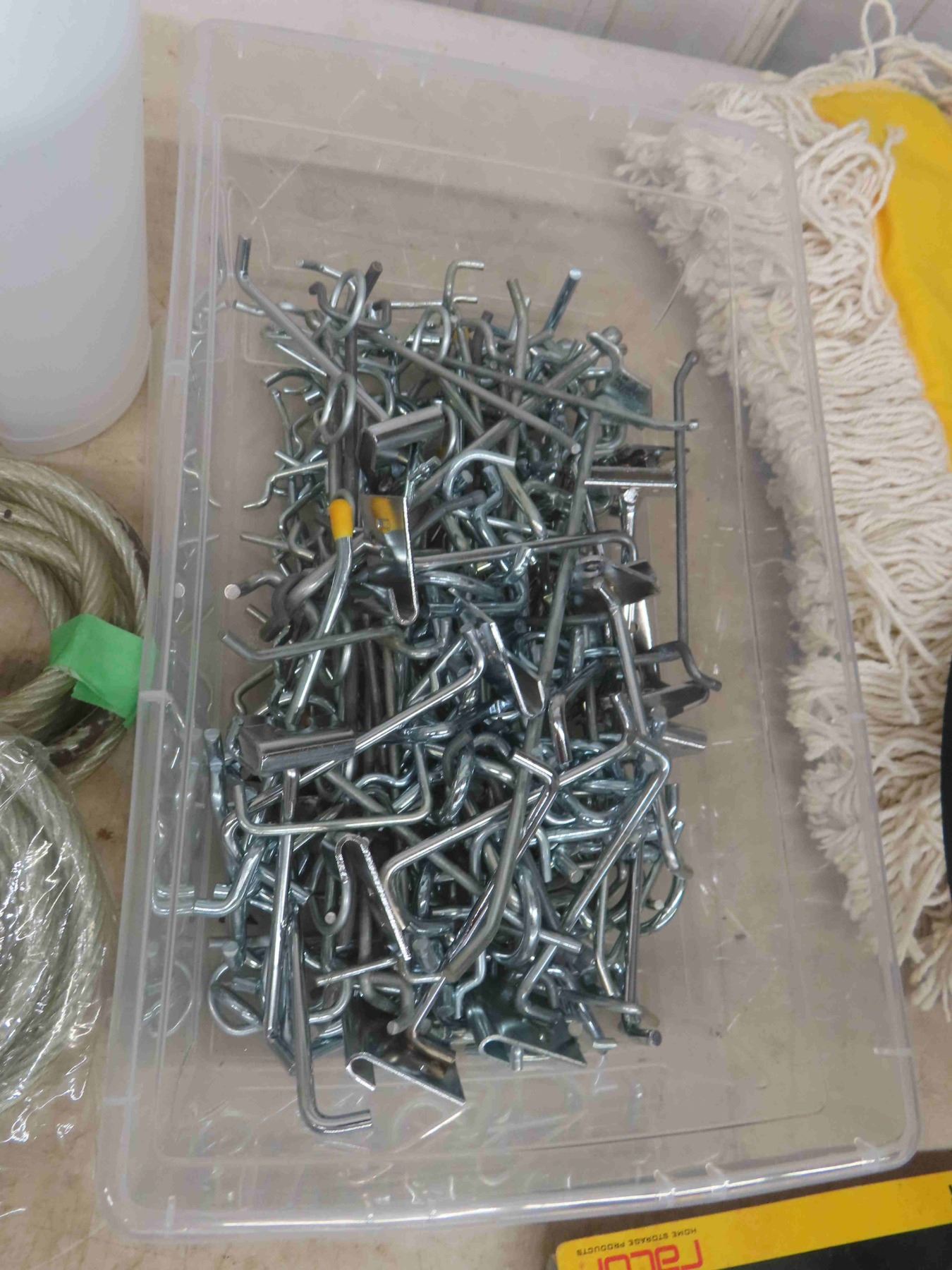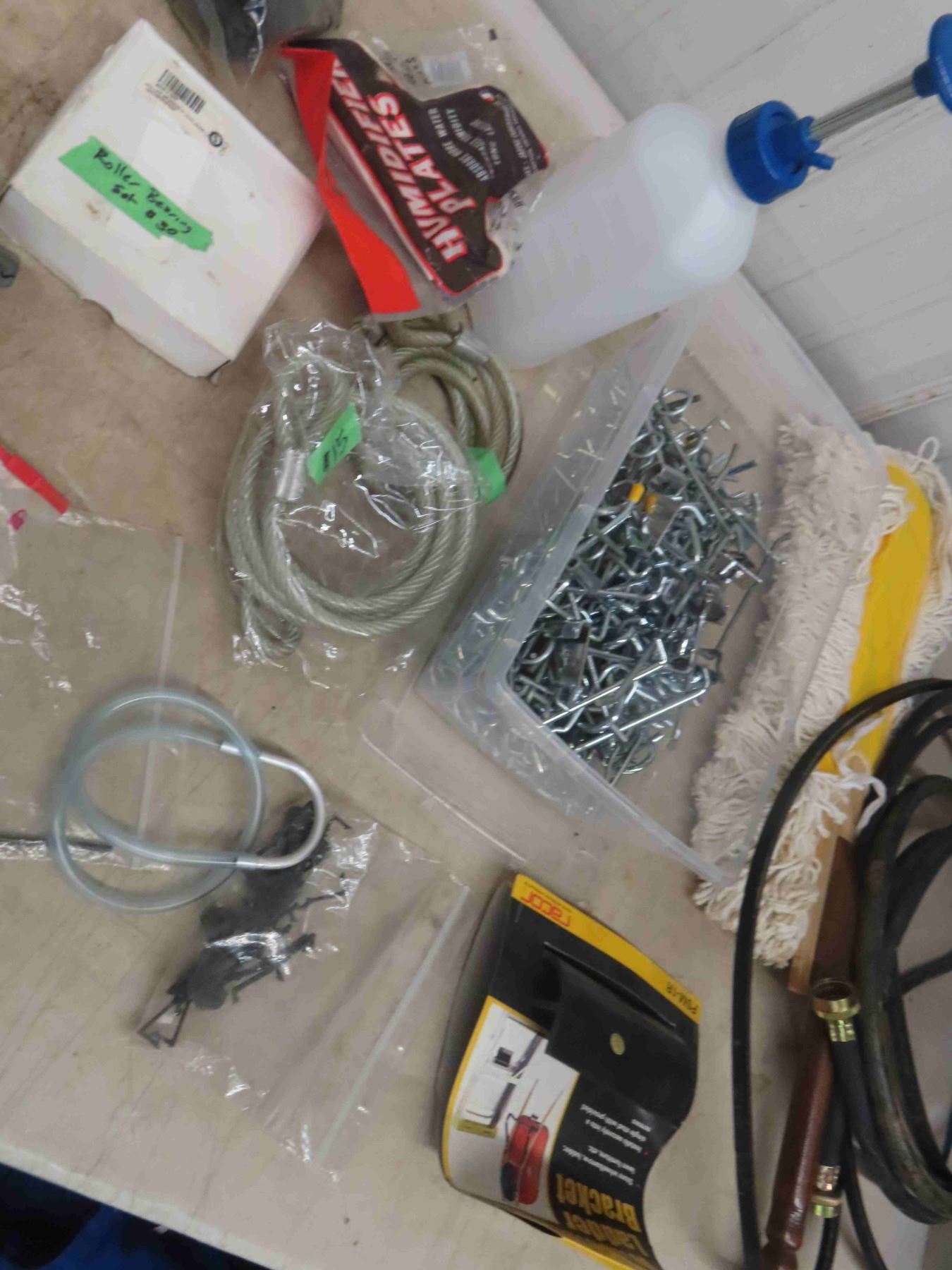 Mixture of Hardware, Garage Door Hardware, Braided Hose, Peg Board Hooks, Shelf Holder, Coated Cable,  4.10/ 3 Tubes, plus more