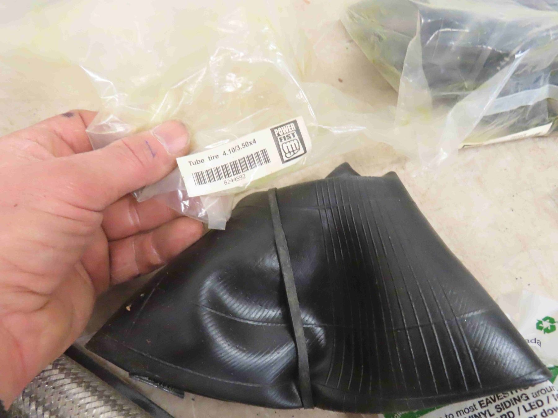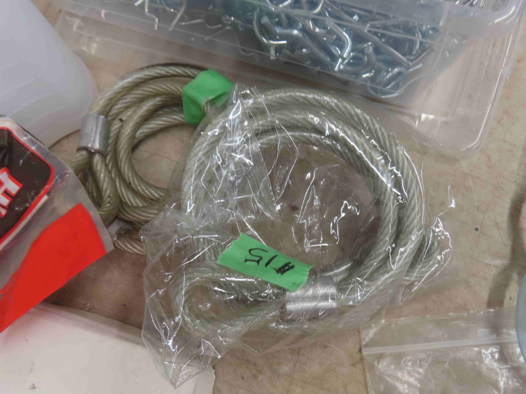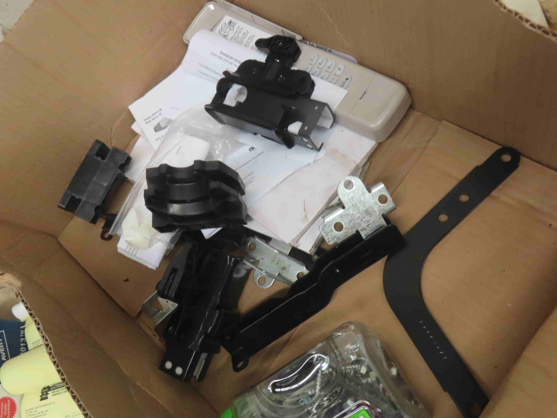 Mixture of Hardware, Garage Door Hardware, Braided Hose, Peg Board Hooks, Shelf Holder, Coated Cable,  4.10/ 3 Tubes, plus more