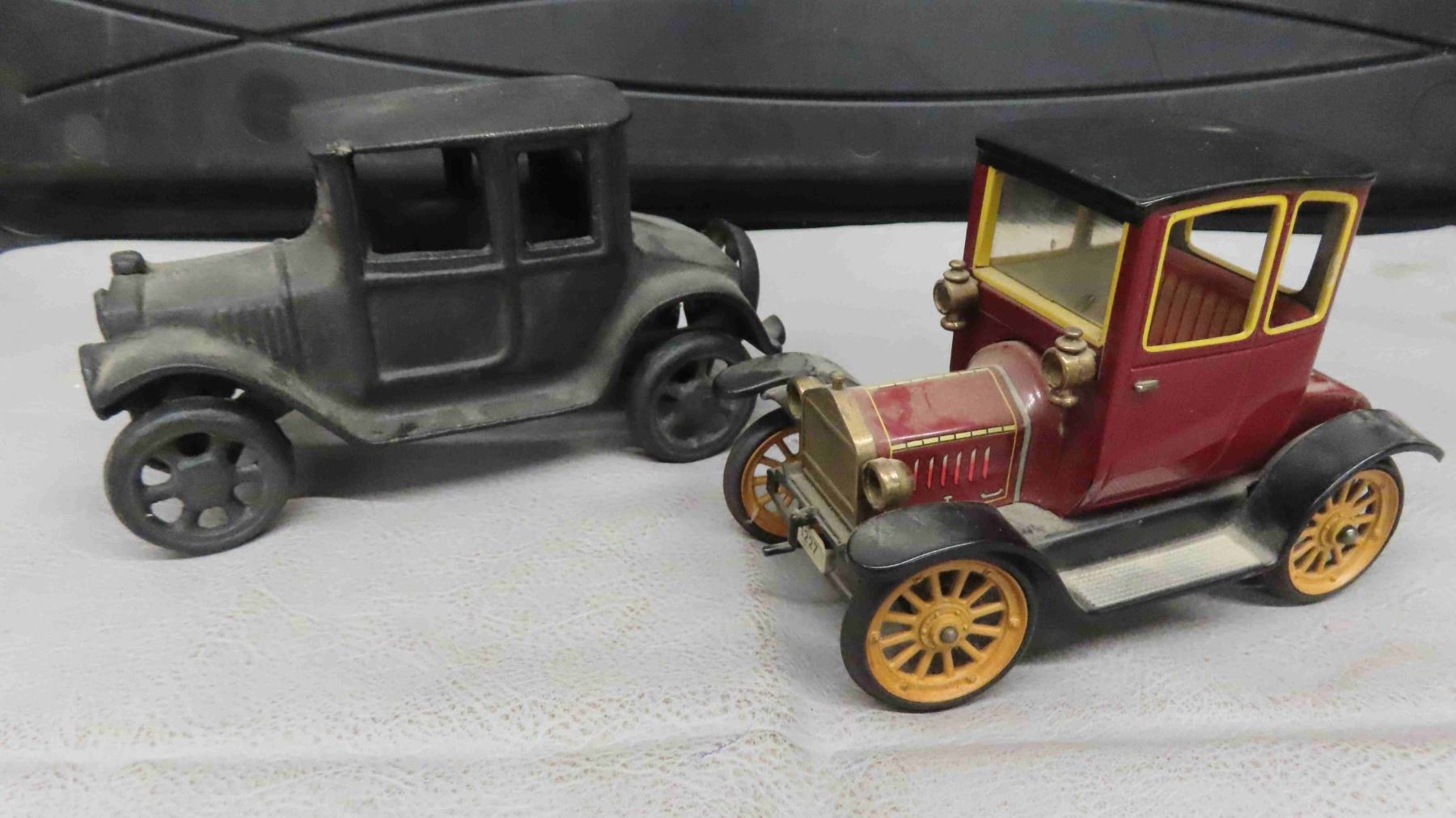 Modern Cast Car 3.25" x 4.5" x 7.5" & Vintage Metal Car 3.5" x 4.25" x 6.5"